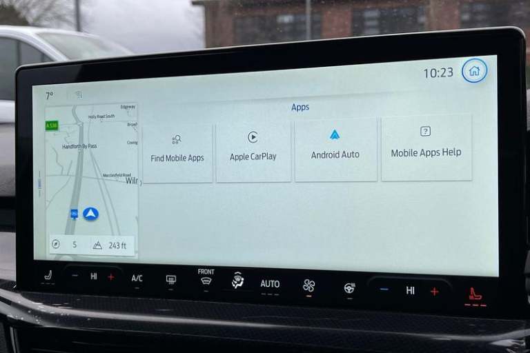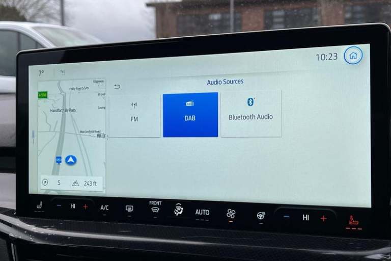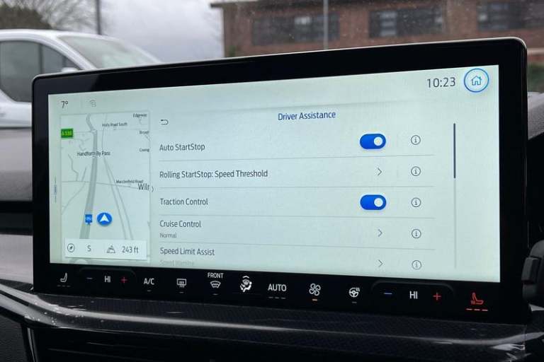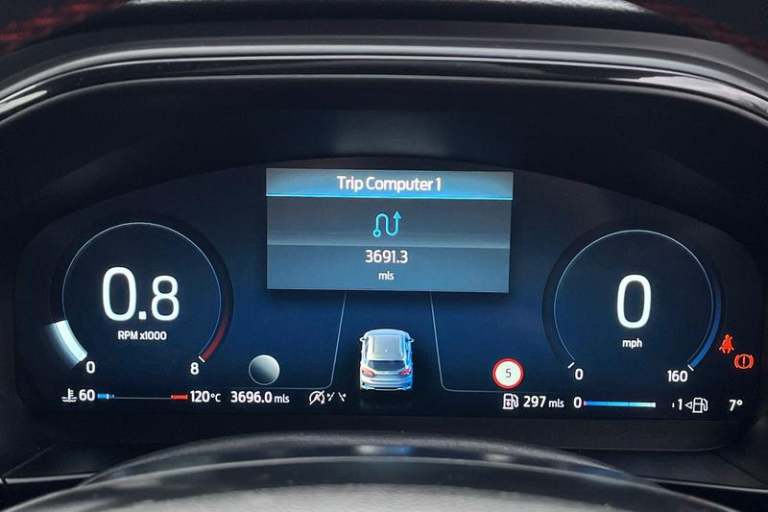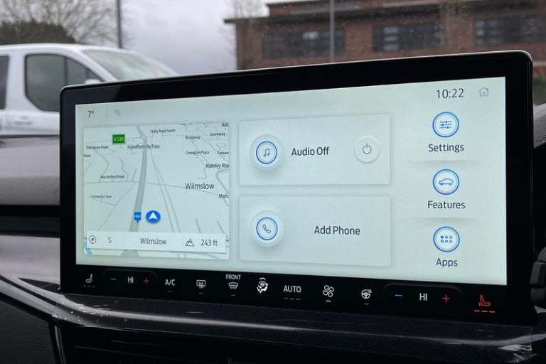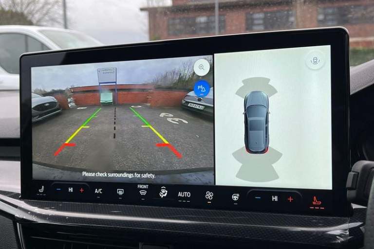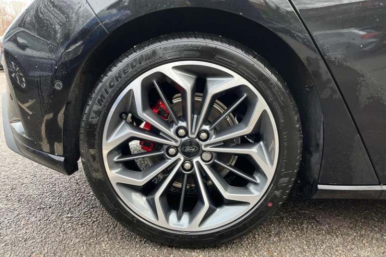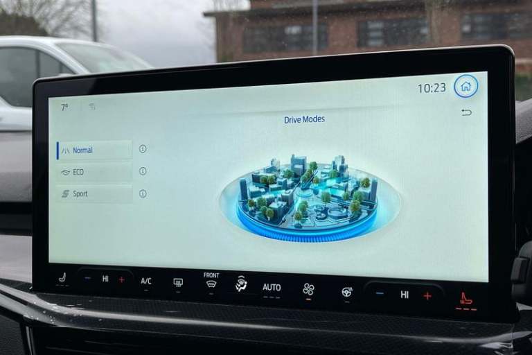 12.3 Digital instrument cluster, Bluetooth system, Digital clock, Easy fuel capless refuelling system, Eco mode, Ford SYNC4 Nav with 13.2'' touchscreen, DAB, Emergency Assistance, Apple Carplay & Android Auto, B&O Premium Audio with 10 speakers, FordPass Connect, Lane keeping system - lane keeping alert and lane keeping aid, PAS, Rev counter, Selectable drive mode, Service interval indicator, Trip computer, Wireless charging pad, Auto headlamps (on/off), Body coloured door handles, Electrically operated front and rear windows with one touch opening and closing, Electrically operated heated power fold door mirrors with puddle lamp with side indicators, Front variable intermittent wipers with electric wash, Heated rear window, LED daytime running lamp, LED rear lamps, LED third brake light, Polished twin tailpipe, Privacy glass, Quickclear heated windscreen, Rain sensor, Rear side wing doors, Tailgate wash/wipe, Unique ST-Line grille, full bodystyling kit, and large body coloured rear roof spoiler, 3 rear headrests, 3 seat bench in 2nd row, Dual zone electronic air temperature control, Full sensico premium upholstery, Height adjustable front headrests, Isofix child seat preparation, Load through ski hatch, Manual 2-way passenger seat adjust, Power 4-way driver seat adjust, with power lumbar adjust, Reach + rake adjustable steering column, Single front passenger seat, 3x3 point rear seatbelts, ABS+Electronic Brake force Distribution, Auto hold function, Driver airbag, EDL