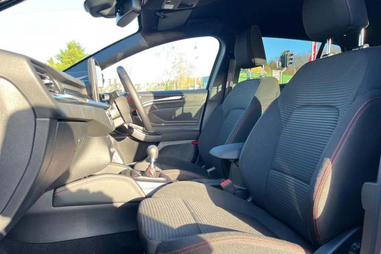 12.3 Digital instrument cluster, Bluetooth system, Digital clock, Easy fuel capless refuelling system, Eco mode, Ford SYNC4 Nav with 13.2'' touchscreen, DAB, Emergency Assistance, Apple Carplay & Android Auto, B&O Premium Audio with 10 speakers, FordPass Connect, Lane keeping system - lane keeping alert and lane keeping aid, PAS, Rev counter, Selectable drive mode, Service interval indicator, Trip computer, Wireless charging pad, Auto headlamps (on/off), Body coloured door handles, Electrically operated front and rear windows with one touch opening and closing, Electrically operated heated power fold door mirrors with puddle lamp with side indicators, Front variable intermittent wipers with electric wash, Heated rear window, LED daytime running lamp, LED rear lamps, LED third brake light, Polished twin tailpipe, Privacy glass, Quickclear heated windscreen, Rain sensor, Rear side wing doors, Tailgate wash/wipe, Unique ST-Line grille, full bodystyling kit, and large body coloured rear roof spoiler, 3 rear headrests, 3 seat bench in 2nd row, Cloth upholstery, Dual zone electronic air temperature control, Height adjustable front headrests, Isofix child seat preparation, Load through ski hatch, Manual 2-way passenger seat adjust, Manual 4-way driver seat adjust, with manual lumbar adjust, Reach + rake adjustable steering column, Single front passenger seat, 3x3 point rear seatbelts, ABS+Electronic Brake force Distribution, Auto hold function, Driver airbag, EDL traction control,