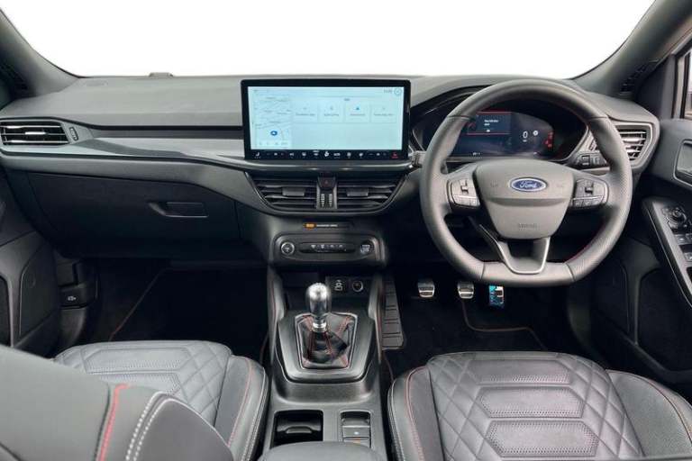 18in Alloy Wheels - 5x3 Spoke - High Gloss Pearl Grey - Machined Finish, ABS - Anti-lock Braking System, Airbags - Driver and Front Passenger, Cruise Control with Adjustable Speed Limiter, DEATC - Dual-Zone Electronic Automatic Temperature Control, Door Mirrors - Electrically-Operated - Heated - Power-Foldable - Puddle Lights - Side Indicators, Electric Windows - Front, Ford Key Free System - Keyless Entry with Keyless Start, Ford SYNC4 Navigation with 13.2in Touchscreen, FordPass Connect, Front Seat - Passenger 2-Way Manual Adjustment, Full Digital 12.3in Instrument Cluster, Full Fixed LED Headlight with LED Daytime Running Lights, Heated Front Seats and Heated Steering Wheel, Lane-Keeping Aid with Lane-Keeping Assist, Load Through Ski Hatch, Parking Sensor - Front and Rear, Polished Twin Tailpipe, Power 4-Way Driver Seat Adjust, Power Steering, Pre-Collision Assist with Autonomous Emergency Braking and Pedestrian-Cyclist Detection, Quickclear Heated Windscreen, Rear Lights - LED, Rear Privacy Glass, Red Brake Calipers, ST-Line Design Pack, Selectable Drive Mode, Sports Tuned Suspension, Thatcham Category Alarm with Power Door Deadlocks, Unique ST-Line Grille and Full Bodystyling Kit - Large Body Coloured Rear Spoiler, Winter Pack, Wireless Charging