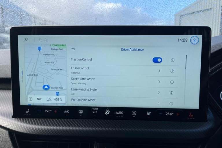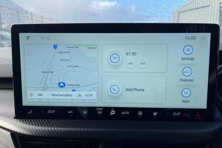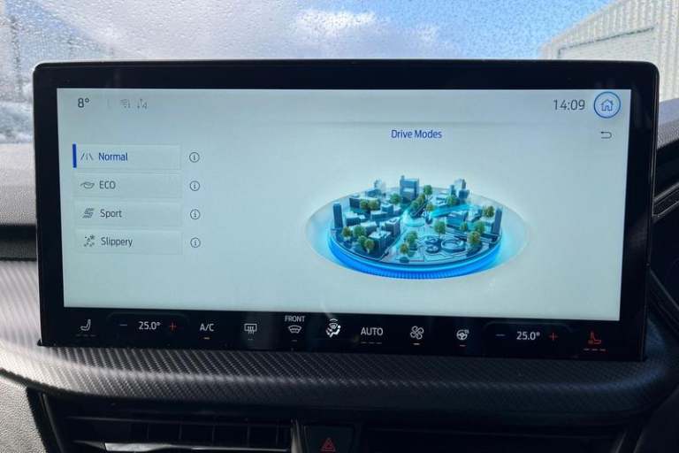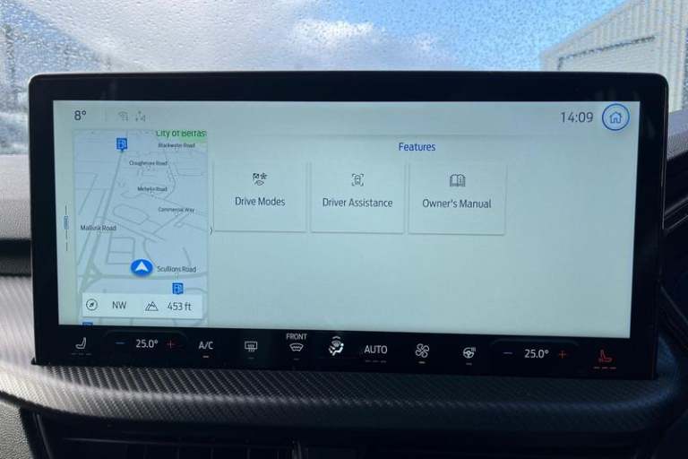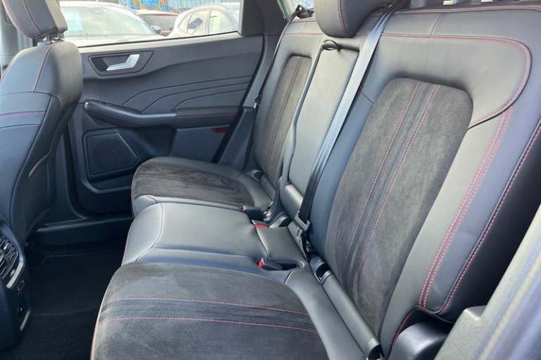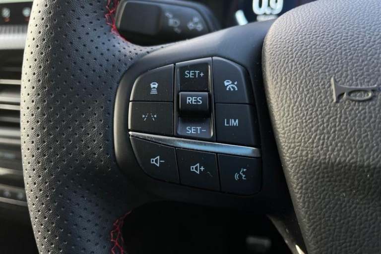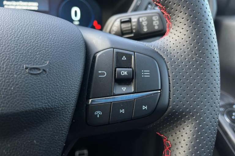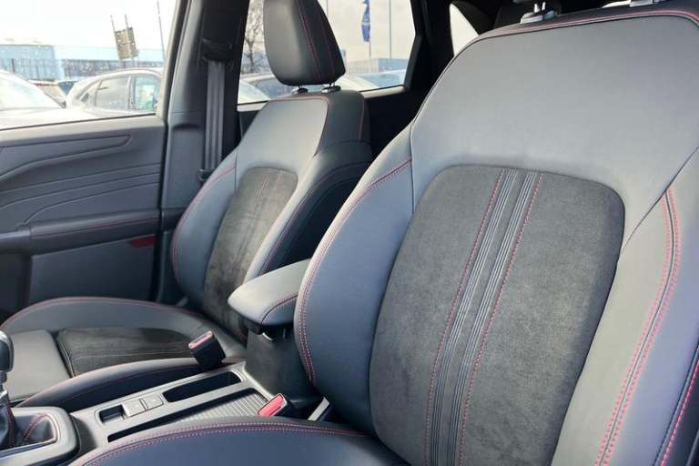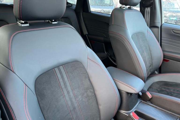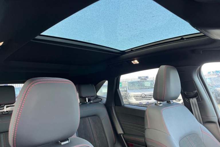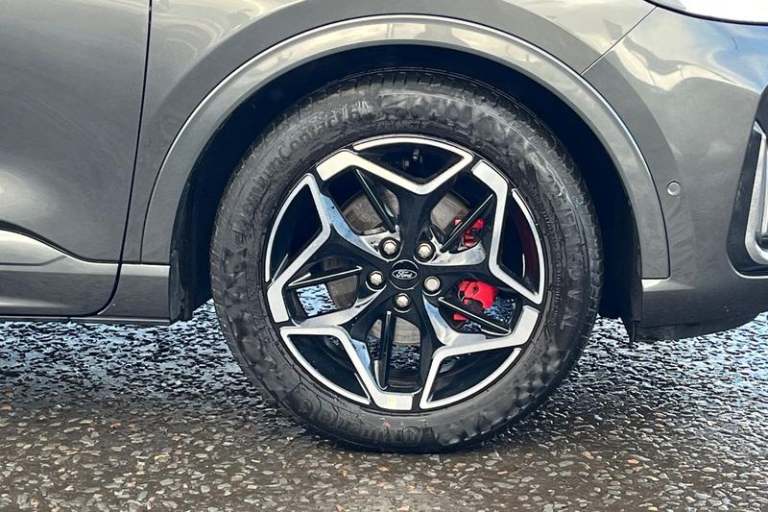 12.3 digital colour instrument cluster, 360 degree view camera, Cross traffic alert with active braking, e-Call (emergency call), Ford easy fuel, Ford SYNC 4 Navigation with 13 touchscreen, DAB radio, emergency assistance, Andriod Auto/Apple CarPlay, 5G modem & Ford Pass connect, Front and rear parking sensors, Hands free power tailgate, Lane keeping aid with lane departure warning, Power assist steering, Selectable drive modes, Service interval indicator, Auto headlamps with high and low beam, Black roof rails, Body colour bumpers, Front LED fog lamps, Large rear spoiler, LED daytime running lights, LED rear lights, LED third brake light, Pop out door edge protectors, Power front/rear windows with global close, Power heated folding door mirrors with puddle lights, memory function and camera, Power opening panoramic roof, Quickclear heated windscreen, Rain sensing wipers, Rear privacy glass, Rear side wing doors, Rear wiper, ST-Line body styling kit, 2nd row sliding seats, Electronic automatic temperature control (EATC), Front and rear head restraints, Partial premium touch sensico upholstery, Rear centre head restraint, Single front passenger seat, Sports seats, 3x3 point rear seatbelts, Airbags - front driver/passenger, front and rear curtain, Drivers knee airbag, Dynamic brake support, Electronic stability control (ESC) and ABS, Evasive steering assist, Ford MyKey Gen 2 safety system, Manual child proof rear door locks, Pre collision assist with autonomous emergency