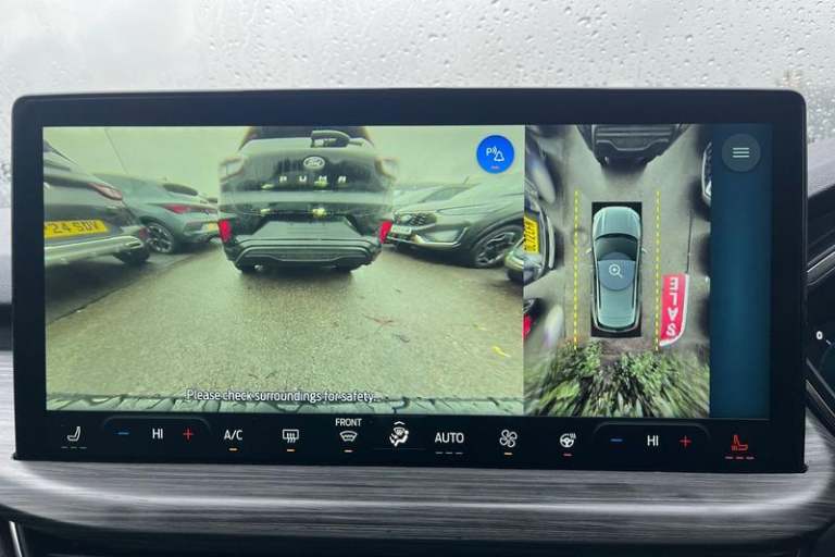 12.3 digital colour instrument cluster, 360 degree camera, Clear exit assist, Cross traffic alert with active braking, e-Call (emergency call), Ford easy fuel, Ford SYNC 4 Navigation with 13 touchscreen, DAB radio, emergency assistance, Andriod Auto/Apple CarPlay, 5G modem & Ford Pass connect, Front and rear parking sensors, Hands free power tailgate, Lane centering assist, Lane keeping aid with lane departure warning, Power assist steering, Selectable drive modes, Service interval indicator, Active body styling kit including black mirror caps and a contrast black painted roof, Auto headlamps with high and low beam, Black roof rails, Body colour bumpers, Front LED fog lamps, LED daytime running lights, LED rear lights, LED third brake light, Pop out door edge protectors, Power front/rear windows with global close, Power heated folding door mirrors with puddle lights, memory function and camera, Quickclear heated windscreen, Rain sensing wipers, Rear privacy glass, Rear side wing doors, Rear spoiler, Rear wiper, 2nd row sliding seats, Active seats, Electronic automatic temperature control (EATC), Front and rear head restraints, Partial premium touch sensico upholstery, Rear centre head restraint, Single front passenger seat, 3x3 point rear seatbelts, Airbags - front driver/passenger, front and rear curtain, Drivers knee airbag, Dynamic brake support, Electronic stability control (ESC) and ABS, Evasive steering assist, Ford MyKey Gen 2 safety system, Manual child proof