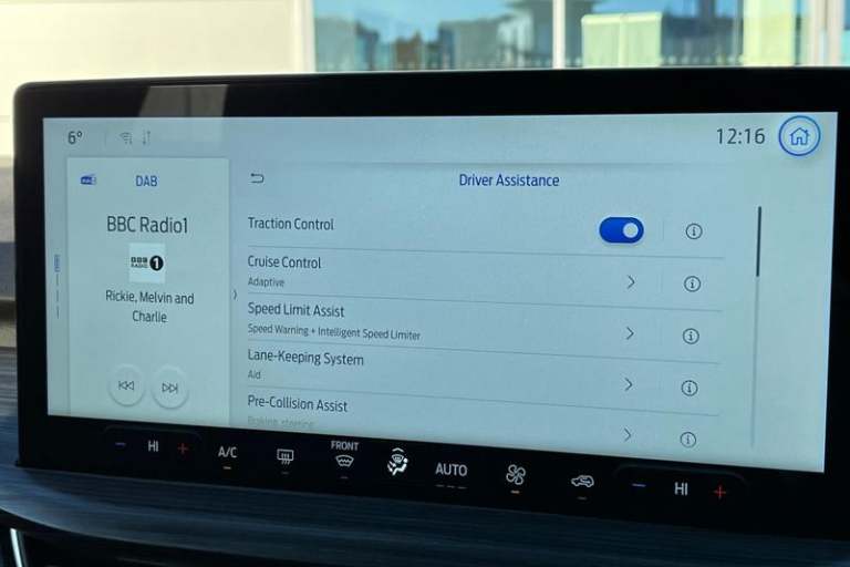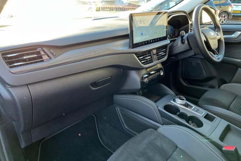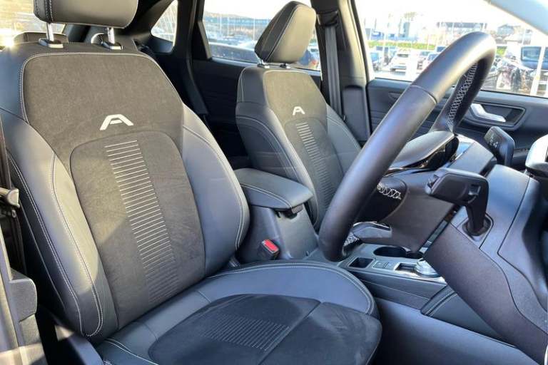 12.3 digital colour instrument cluster, 360 degree camera, Clear exit assist, Cross traffic alert with active braking, e-Call (emergency call), Ford easy fuel, Ford SYNC 4 Navigation with 13 touchscreen, DAB radio, emergency assistance, Andriod Auto/Apple CarPlay, 5G modem & Ford Pass connect, Front and rear parking sensors, Hands free power tailgate, Lane centering assist, Lane keeping aid with lane departure warning, Power assist steering, Selectable drive modes, Service interval indicator, Active body styling kit including black mirror caps and a contrast black painted roof, Auto headlamps with high and low beam, Black roof rails, Body colour bumpers, Front LED fog lamps, LED daytime running lights, LED rear lights, LED third brake light, Pop out door edge protectors, Power front/rear windows with global close, Power heated folding door mirrors with puddle lights, memory function and camera, Quickclear heated windscreen, Rain sensing wipers, Rear privacy glass, Rear side wing doors, Rear spoiler, Rear wiper, 2nd row sliding seats, Active seats, Electronic automatic temperature control (EATC), Front and rear head restraints, Partial premium touch sensico upholstery, Rear centre head restraint, Single front passenger seat, 3x3 point rear seatbelts, Airbags - front driver/passenger, front and rear curtain, Drivers knee airbag, Dynamic brake support, Electronic stability control (ESC) and ABS, Evasive steering assist, Ford MyKey Gen 2 safety system, Manual child proof