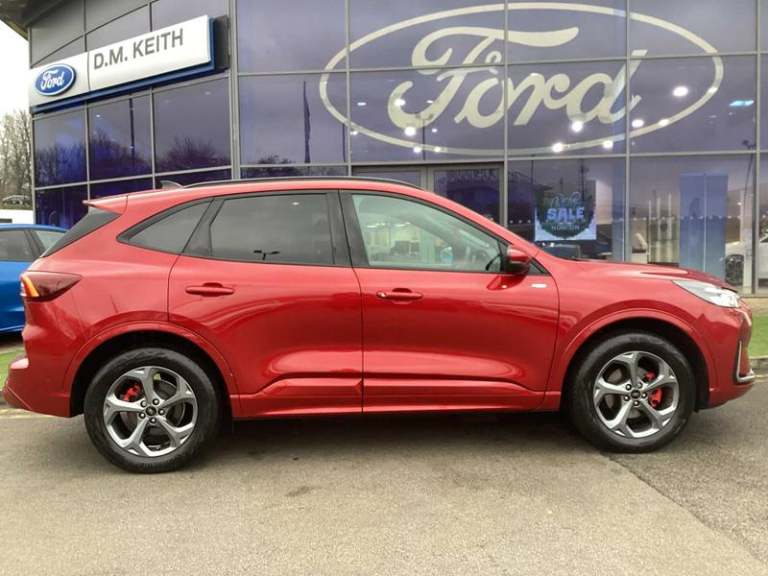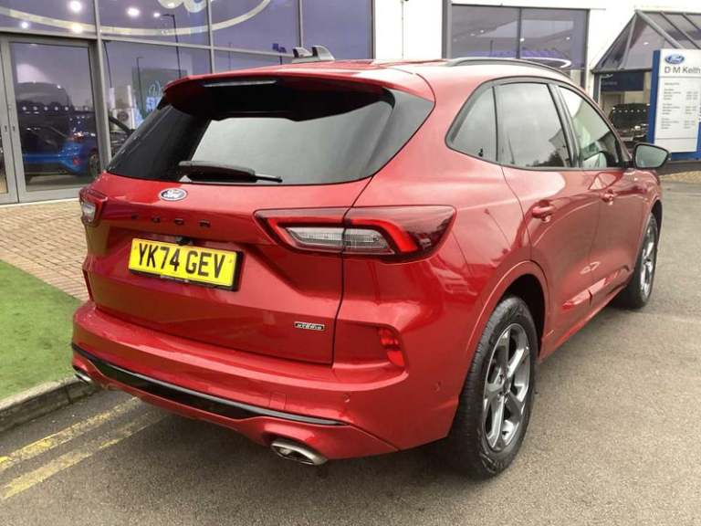 12V Power Point in Floor Console, 12v Power Point in Cargo Area, 12v Socket - Voltage Regulator, Ford SYNC 4 Navigation, eCall, 360 Degree Camera, Acoustic Vehicle Alert System - AVAS, Adaptive Cruise Control, Front and Rear Parking Sensors, Pre-Collision Assist with Autonomous Emergency Braking, Selectable Drive Modes, Trip Computer, Tyre Pressure Monitoring System, 18in Alloy Wheels - ST-Line - Rock Metallic, Aluminium - Finish Front Scuff Plates with ST-Line Script, Black Roof Rails, Dual Exhaust Tailpipes with Unique Brushed Stainless Steel Finish, Exterior Door Handles - Body Coloured, Front Windows - Laminated Glass, Front and Rear Bumper - Sporty Body Colour with Rear Ebony High-Gloss Insert, Heated and Power Folding Door Mirrors - Puddle Lights - Memory Function - Camera, Kuga Badge, Large Rear Spoiler, Locking Wheel Nuts, Lower Bodyside Moulding - Body Colour, Quickclear Heated Windscreen, Rear Privacy Glass, Red Brake Calipers, Rocker Panel Mouldings - Body Colour - ST-Line Design, ST-Line Badge on Left and Right Side Wings, ST-Line Bodystyling Kit, ST-Line Front and Rear Bumper Moulding - Body Colour, Tailgate Badge - PHEV - Plug-In-Hybrid, Tailgate Handle - Body Colour, Tow Hooks - Front and Rear, Tyre Inflation Kit, Windows - Power Front and Rear with Global Closing, Full LED Headlamps, Headlights - Automatic Follow Me Home Lighting, Headlights - Automatic High Beam Assist, Headlights - Levelling System - Manual, Headlights - Unique Bending, High-Mounted Brake Light,