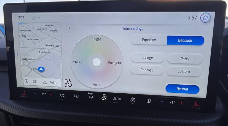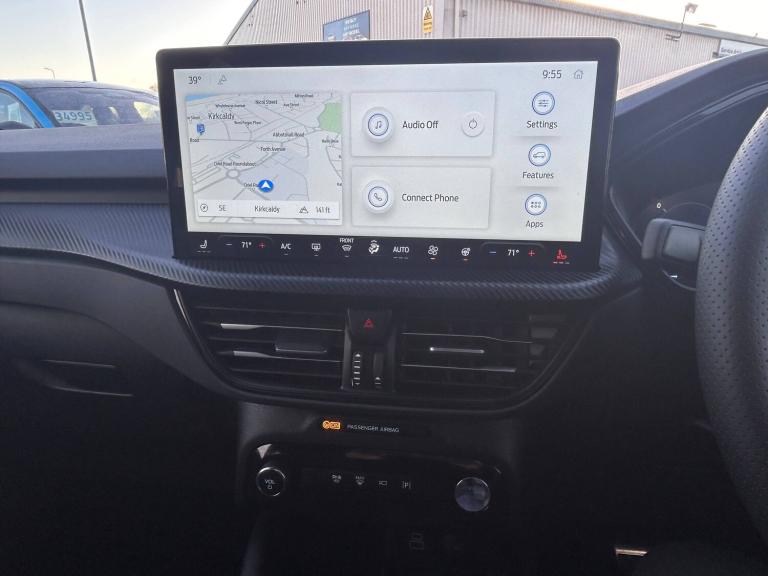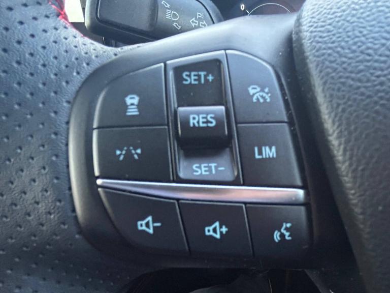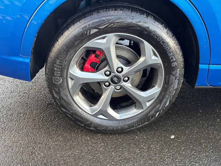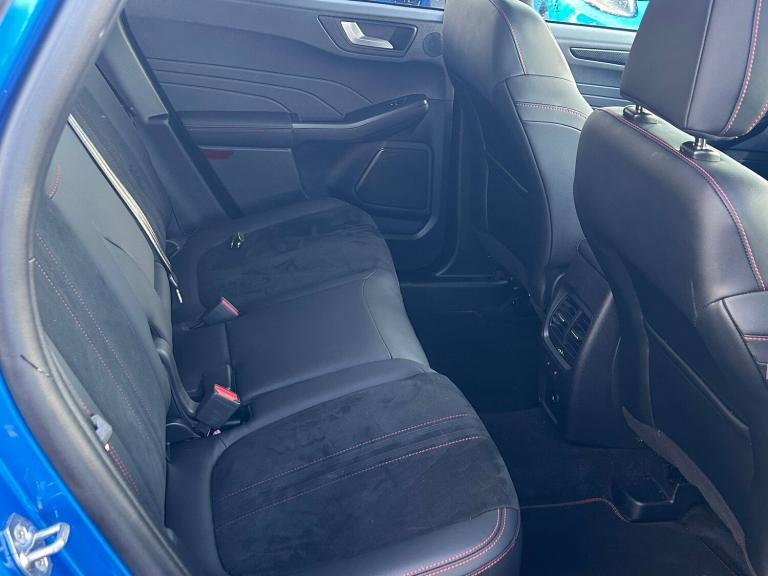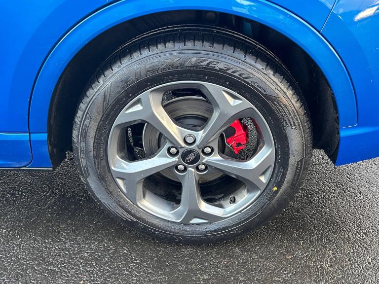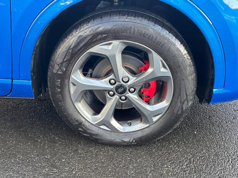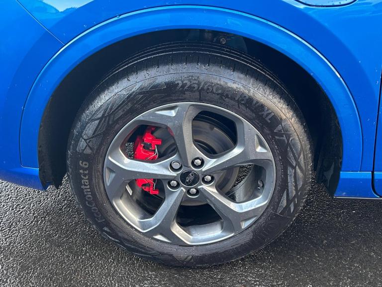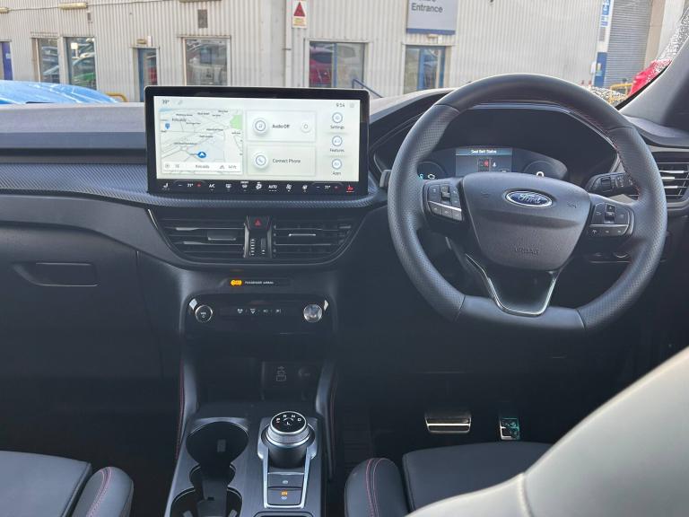3x3 point rear seatbelts, Airbags - front driver/passenger, front and rear curtain, Drivers knee airbag, Dynamic brake support, Electronic stability control (ESC) and ABS, Evasive steering assist, Ford MyKey Gen 2 safety system, Manual child proof rear door locks, Pre collision assist with autonomous emergency braking, Rear seat Occupancy alert, Red brake calipers, Tyre pressure monitoring system, 12.3 inch digital colour instrument cluster, 360 degree view camera, Clear exit assist, Cross traffic alert with active braking, e-Call (emergency call), Ford easy fuel, Ford SYNC 4 Navigation with 13 inch touchscreen, DAB radio, emergency assistance, Andriod Auto/Apple CarPlay, 5G modem and Ford Pass connect, Front and rear parking sensors, Hands free power tailgate, Lane centering assist, Lane keeping aid with lane departure warning, Power assist steering, Selectable drive modes, Service interval indicator, Auto headlamps with high and low beam, Black roof rails, Body colour bumpers, Front LED fog lamps, Full LED headlamps, Large rear spoiler, LED daytime running lights, LED rear lights, LED third brake light, Pop out door edge protectors, Power front/rear windows with global close, Power heated folding door mirrors with puddle lights, memory function and camera, Quickclear heated windscreen, Rain sensing wipers, Rear privacy glass, Rear side wing doors, Rear wiper, Solid paint, ST-Line body styling kit, 10 way power adjust driver seat, 2nd row sliding seats, 8 way manual passenger seat including lumbar support and height adjust, Electronic automatic temperature control (EATC), Front and rear head restraints, Partial premium touch sensico upholstery, Rear centre head restraint, Single front passenger seat, Sports seats, Driver assistance pack - Kuga Auto, Single phase public charge cable, Sports suspension, Engine immobiliser, Keyless entry and Ford power start button (Keyless start), Locking wheel nuts, Remote powered central double locking doors, Thatcham category 1 alarm, BandO premium audio system with 10 speakers, subwoofer and 2 USB ports, 18 inch ST-Line rock metallic alloy wheel, Tyre inflation kit