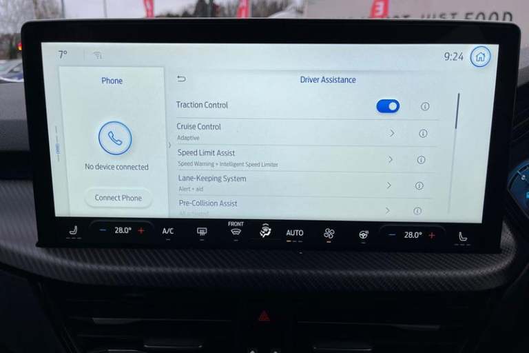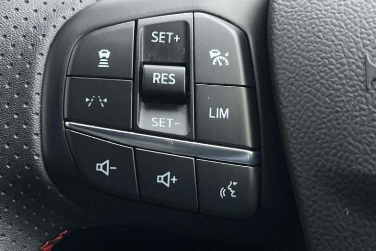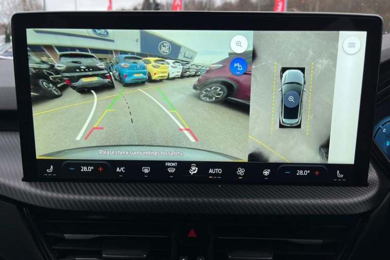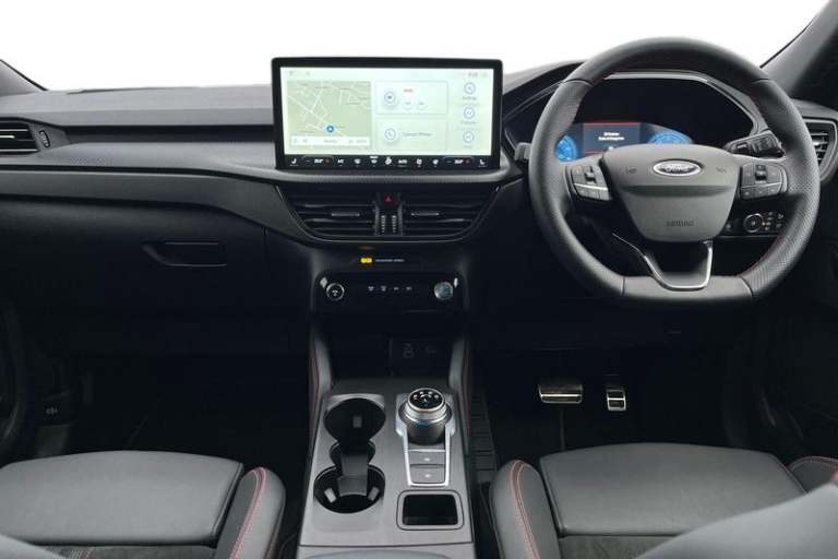 12.3 digital colour instrument cluster, 360 degree view camera, Clear exit assist, Cross traffic alert with active braking, e-Call (emergency call), Ford easy fuel, Ford SYNC 4 Navigation with 13 touchscreen, DAB radio, emergency assistance, Andriod Auto/Apple CarPlay, 5G modem & Ford Pass connect, Front and rear parking sensors, Hands free power tailgate, Lane centering assist, Lane keeping aid with lane departure warning, Power assist steering, Selectable drive modes, Service interval indicator, Auto headlamps with high and low beam, Black roof rails, Body colour bumpers, Front LED fog lamps, Large rear spoiler, LED daytime running lights, LED rear lights, LED third brake light, Pop out door edge protectors, Power front/rear windows with global close, Power heated folding door mirrors with puddle lights, memory function and camera, Power opening panoramic roof, Quickclear heated windscreen, Rain sensing wipers, Rear privacy glass, Rear side wing doors, Rear wiper, ST-Line body styling kit, 2nd row sliding seats, Electronic automatic temperature control (EATC), Front and rear head restraints, Partial premium touch sensico upholstery, Rear centre head restraint, Single front passenger seat, Sports seats, 3x3 point rear seatbelts, Airbags - front driver/passenger, front and rear curtain, Drivers knee airbag, Dynamic brake support, Electronic stability control (ESC) and ABS, Evasive steering assist, Ford MyKey Gen 2 safety system, Manual child proof rear door locks, Pre