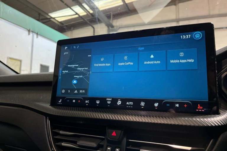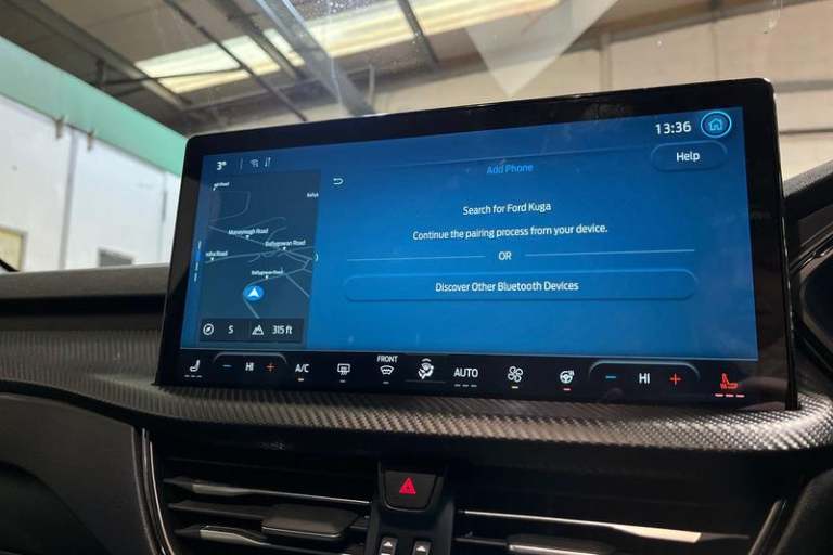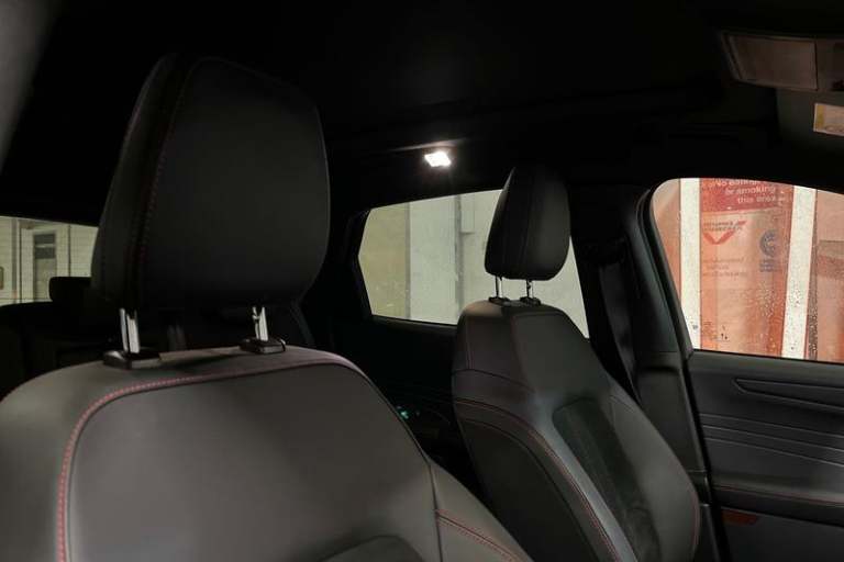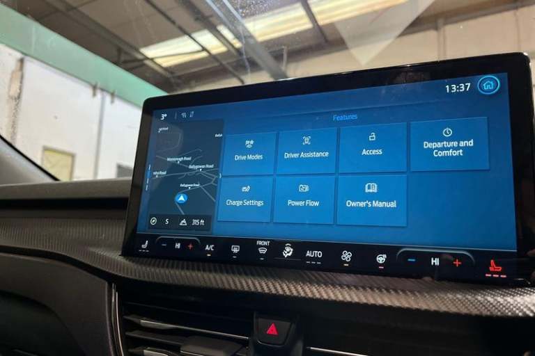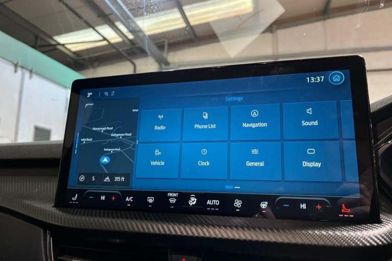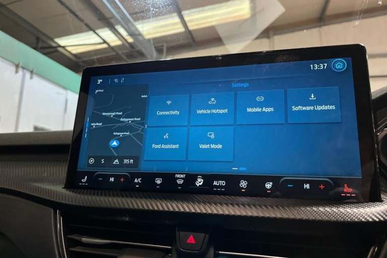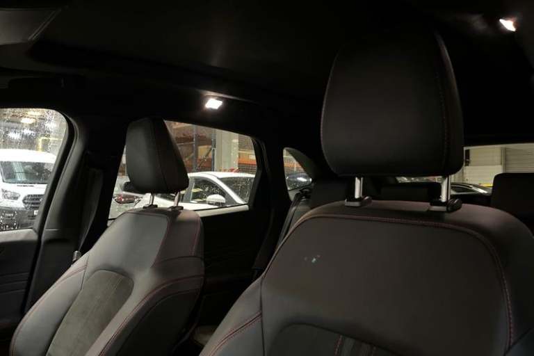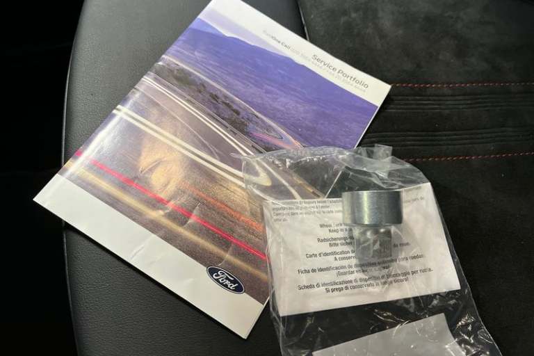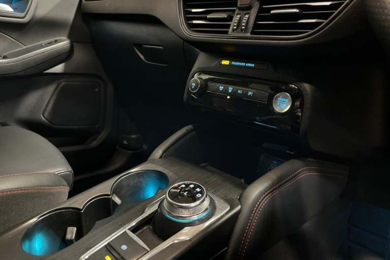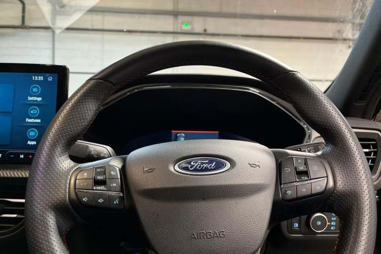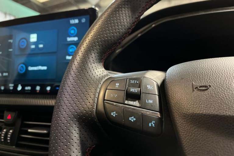 12.3 digital colour instrument cluster, 360 degree view camera, Clear exit assist, Cross traffic alert with active braking, e-Call (emergency call), Ford easy fuel, Ford SYNC 4 Navigation with 13 touchscreen, DAB radio, emergency assistance, Andriod Auto/Apple CarPlay, 5G modem & Ford Pass connect, Front and rear parking sensors, Hands free power tailgate, Lane centering assist, Lane keeping aid with lane departure warning, Power assist steering, Selectable drive modes, Service interval indicator, Auto headlamps with high and low beam, Black roof rails, Body colour bumpers, Front LED fog lamps, Large rear spoiler, LED daytime running lights, LED rear lights, LED third brake light, Pop out door edge protectors, Power front/rear windows with global close, Power heated folding door mirrors with puddle lights, memory function and camera, Power opening panoramic roof, Quickclear heated windscreen, Rain sensing wipers, Rear privacy glass, Rear side wing doors, Rear wiper, ST-Line body styling kit, 2nd row sliding seats, Electronic automatic temperature control (EATC), Front and rear head restraints, Partial premium touch sensico upholstery, Rear centre head restraint, Single front passenger seat, Sports seats, 3x3 point rear seatbelts, Airbags - front driver/passenger, front and rear curtain, Drivers knee airbag, Dynamic brake support, Electronic stability control (ESC) and ABS, Evasive steering assist, Ford MyKey Gen 2 safety system, Manual child proof rear door locks,
