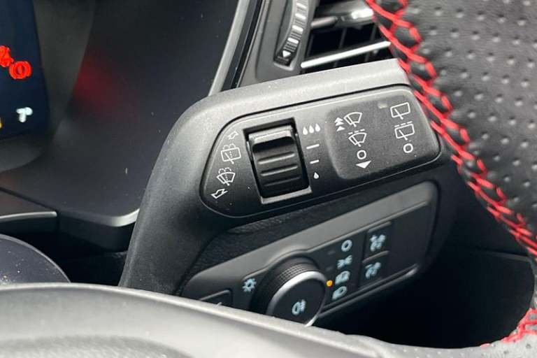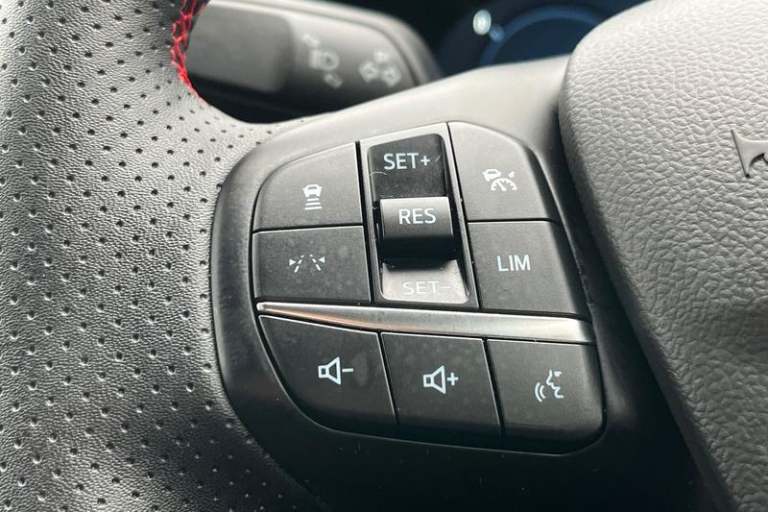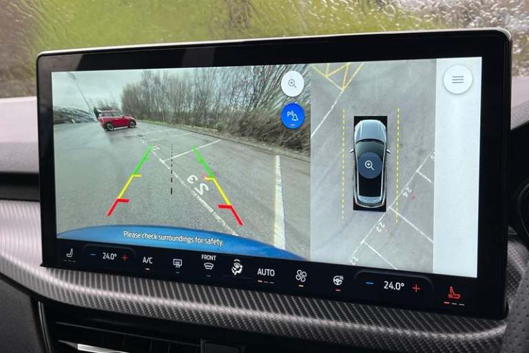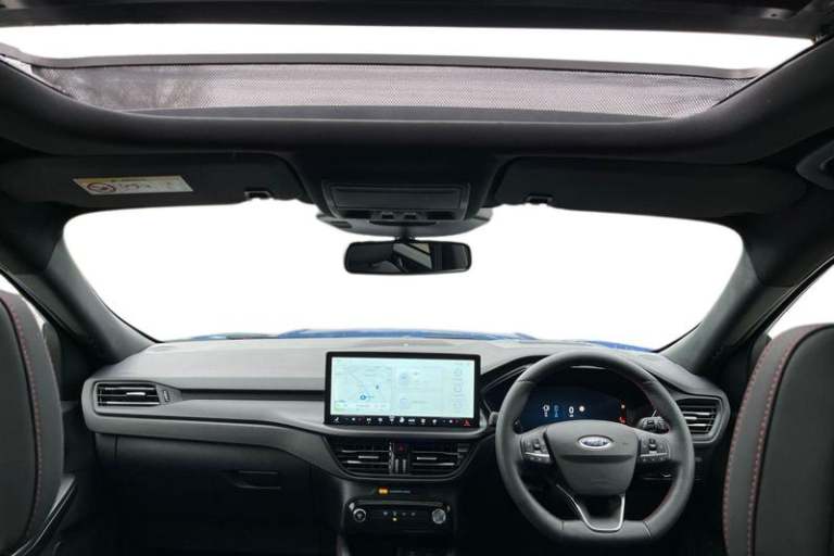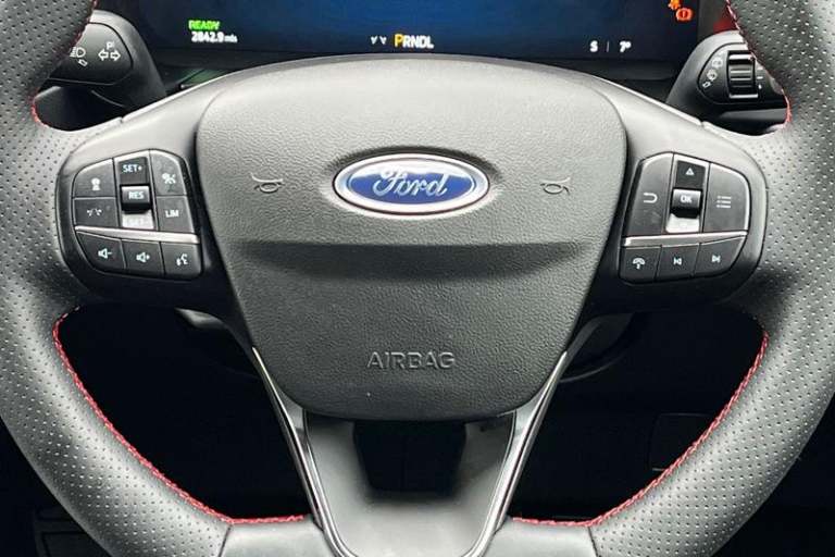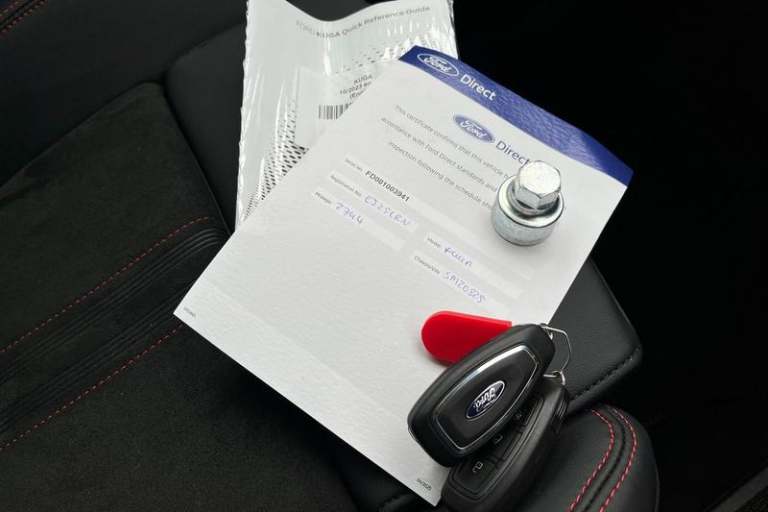 12.3 digital colour instrument cluster, 360 degree view camera, Clear exit assist, Cross traffic alert with active braking, e-Call (emergency call), Ford easy fuel, Ford SYNC 4 Navigation with 13 touchscreen, DAB radio, emergency assistance, Andriod Auto/Apple CarPlay, 5G modem & Ford Pass connect, Front and rear parking sensors, Hands free power tailgate, Lane centering assist, Lane keeping aid with lane departure warning, Power assist steering, Selectable drive modes, Service interval indicator, Auto headlamps with high and low beam, Black roof rails, Body colour bumpers, Front LED fog lamps, Large rear spoiler, LED daytime running lights, LED rear lights, LED third brake light, Pop out door edge protectors, Power front/rear windows with global close, Power heated folding door mirrors with puddle lights, memory function and camera, Power opening panoramic roof, Quickclear heated windscreen, Rain sensing wipers, Rear privacy glass, Rear side wing doors, Rear wiper, ST-Line body styling kit, 2nd row sliding seats, Electronic automatic temperature control (EATC), Front and rear head restraints, Partial premium touch sensico upholstery, Rear centre head restraint, Single front passenger seat, Sports seats, 3x3 point rear seatbelts, Airbags - front driver/passenger, front and rear curtain, Drivers knee airbag, Dynamic brake support, Electronic stability control (ESC) and ABS, Evasive steering assist, Ford MyKey Gen 2 safety system, Manual child proof rear door locks,