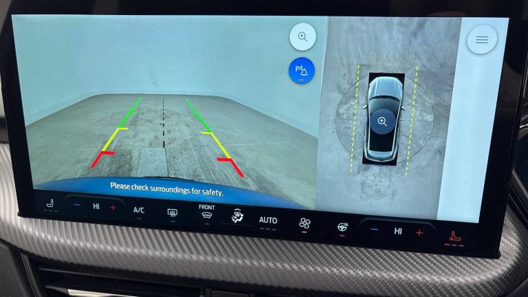 3x3 point rear seatbelts, Airbags - front driver/passenger, front and rear curtain, Drivers knee airbag, Dynamic brake support, Electronic stability control (ESC) and ABS, Evasive steering assist, Ford MyKey Gen 2 safety system, Manual child proof rear door locks, Pre collision assist with autonomous emergency braking, Rear seat Occupancy alert, Red brake calipers, Tyre pressure monitoring system, 12.3 inch digital colour instrument cluster, 360 degree view camera, Clear exit assist, Cross traffic alert with active braking, e-Call (emergency call), Ford easy fuel, Ford SYNC 4 Navigation with 13 inch touchscreen, DAB radio, emergency assistance, Andriod Auto/Apple CarPlay, 5G modem and Ford Pass connect, Front and rear parking sensors, Hands free power tailgate, Lane centering assist, Lane keeping aid with lane departure warning, Power assist steering, Selectable drive modes, Service interval indicator, Auto headlamps with high and low beam, Black roof rails, Body colour bumpers, Front LED fog lamps, Full LED headlamps, Large rear spoiler, LED daytime running lights, LED rear lights, LED third brake light, Pop out door edge protectors, Power front/rear windows with global close, Power heated folding door mirrors with puddle lights, memory function and camera, Power opening panoramic roof, Quickclear heated windscreen, Rain sensing wipers, Rear privacy glass, Rear side wing doors, Rear wiper, Solid paint, ST-Line body styling kit, 10 way power adjust driver seat, 2nd row sliding seats, 8 way manual passenger seat including lumbar support and height adjust, Driver seat memory function, Electronic automatic temperature control (EATC), Front and rear head restraints, Partial premium touch sensico upholstery, Rear centre head restraint, Single front passenger seat, Sports seats, Driver assistance pack - Kuga Auto, Winter pack - Kuga, Single phase public charge cable, Sports suspension, Engine immobiliser, Keyless entry and Ford power start button (Keyless start), Locking wheel nuts, Remote powered central double locking doors, Thatcham category 1 alarm, High performance (700W) BandO premium audio system with enhanced sound tuning, 10 speakers including upgraded door speakers, subwoofer and 2 USB ports, 19 inch ST-Line alloy wheel with an ebony black and machined finish, Tyre inflation kit