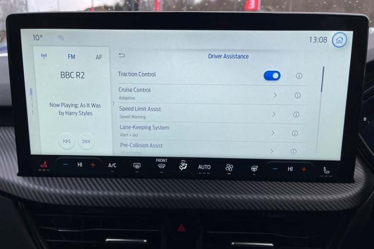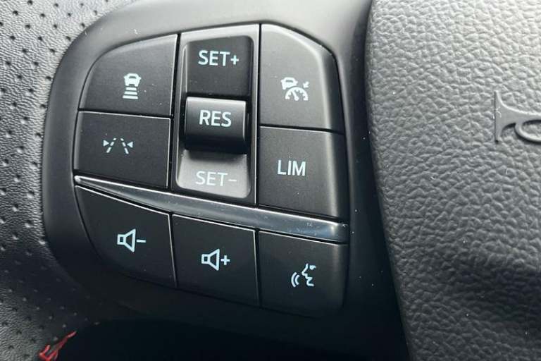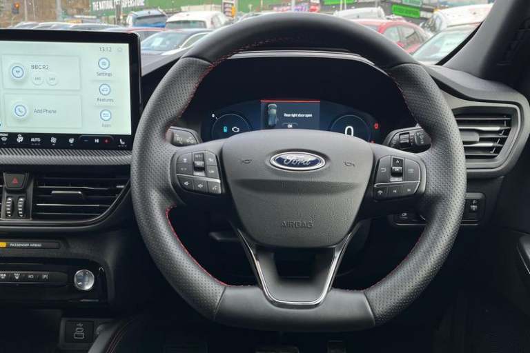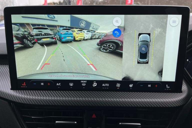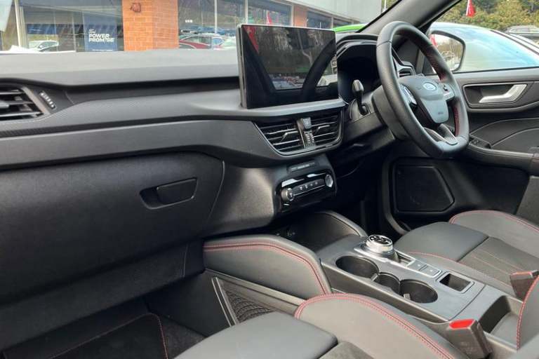 12.3 digital colour instrument cluster, 360 degree view camera, Clear exit assist, Cross traffic alert with active braking, e-Call (emergency call), Ford easy fuel, Ford SYNC 4 Navigation with 13 touchscreen, DAB radio, emergency assistance, Andriod Auto/Apple CarPlay, 5G modem & Ford Pass connect, Front and rear parking sensors, Hands free power tailgate, Lane centering assist, Lane keeping aid with lane departure warning, Power assist steering, Selectable drive modes, Service interval indicator, Auto headlamps with high and low beam, Black roof rails, Body colour bumpers, Front LED fog lamps, Large rear spoiler, LED daytime running lights, LED rear lights, LED third brake light, Pop out door edge protectors, Power front/rear windows with global close, Power heated folding door mirrors with puddle lights, memory function and camera, Power opening panoramic roof, Quickclear heated windscreen, Rain sensing wipers, Rear privacy glass, Rear side wing doors, Rear wiper, ST-Line body styling kit, 2nd row sliding seats, Electronic automatic temperature control (EATC), Front and rear head restraints, Partial premium touch sensico upholstery, Rear centre head restraint, Single front passenger seat, Sports seats, 3x3 point rear seatbelts, Airbags - front driver/passenger, front and rear curtain, Drivers knee airbag, Dynamic brake support, Electronic stability control (ESC) and ABS, Evasive steering assist, Ford MyKey Gen 2 safety system, Manual child proof rear door locks, Pre
