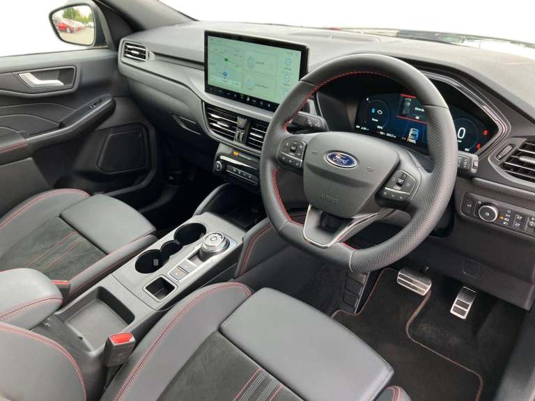 This 2025 Ford Kuga ST Line X offers exceptional peace of mind with its MOT valid until June 2028, ensuring roadworthiness for years to come. This stylish SUV is powered by an efficient 2.5 litre petrol hybrid engine, meeting Euro 6 emission standards. The ST Line X trim level brings a sporty aesthetic and a host of desirable features, making it a compelling choice for those seeking both performance and practicality. Great features include heated seats front and rear, heated steering wheel, panoramic roof, 360 degree parking camera, front and rear cameras, adaptive cruise control and much more. Experience impressive fuel economy with this Kuga, achieving an outstanding 52 miles per gallon, which is significantly better than many other vehicles in its class. Furthermore, its low insurance group rating means that running costs are kept to a minimum, offering excellent value for money. This combination of efficiency, affordability, and the dynamic ST Line X styling makes this Ford Kuga a truly stand out option.
