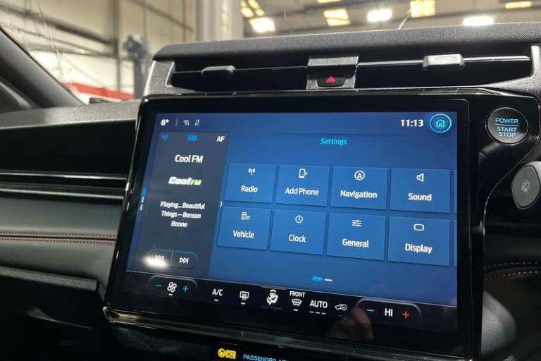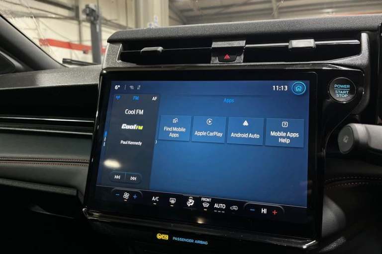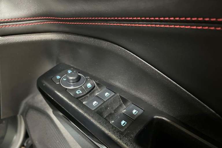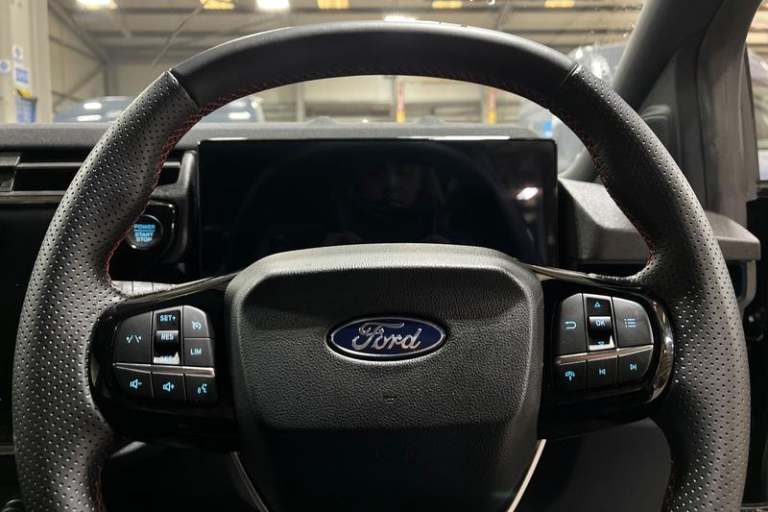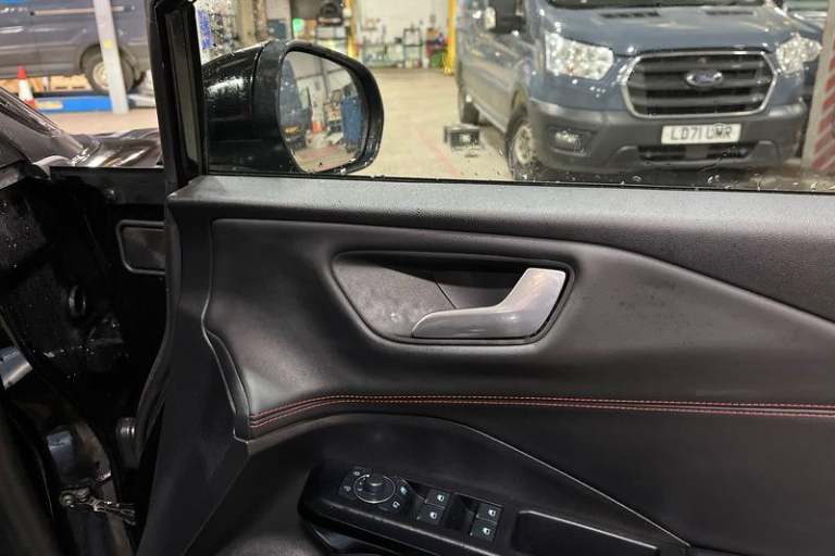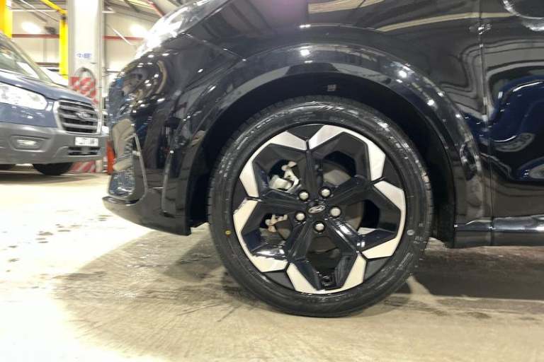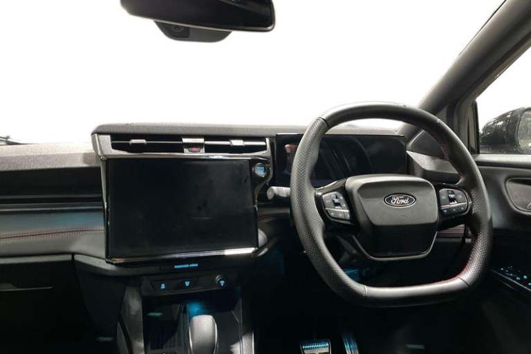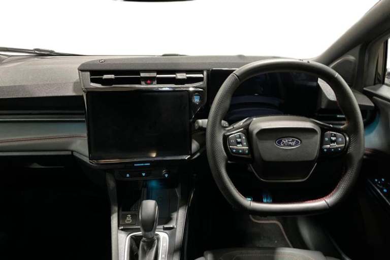 Driver impairment monitor, Emergency call service, Ford easy fuel, Full digital 12.8 instrument cluster, Lane keeping aid with lane departure warning, Power assist steering, Selectable drive modes(Normal, Eco, Sport, Slippery and Trail), Speed sign recognition, Automatic headlights with rain sensing wipers and auto high beam, Front fog lamps, LED daytime running lights, LED rear lamps, LED third brake light, Power foldable heated door mirrors with puddle lamps and puma logo protection, Quickclear heated windscreen, Rear privacy glass, Rear side wing doors, Rear wiper, ST-Line X body styling kit, 3 seat bench in 2nd row, 4 way lumbar support for passenger seat, Centre console with armrest and stowage, Electronic automatic temperature control (EATC), Ford megabox extended bootspace, Front and rear head restraints, Front floor mats, Manual 4 way driver seat adjust with lumbar adjustment, Single front passenger seat, ST-Line X Premium synthetic leather upholstery, 3 rear seatbelts, Child safety lock, Electronic stability control (ESC) and hill start assist, Pre-collision assist with autonomous emergency braking, pedestrian/cyclist detection & post-collision braking, Tyre pressure monitoring system (TPMS)