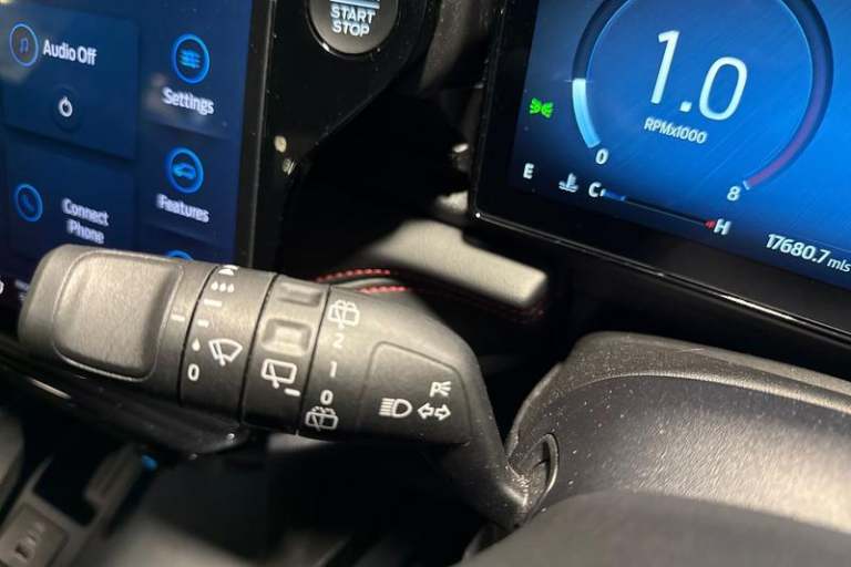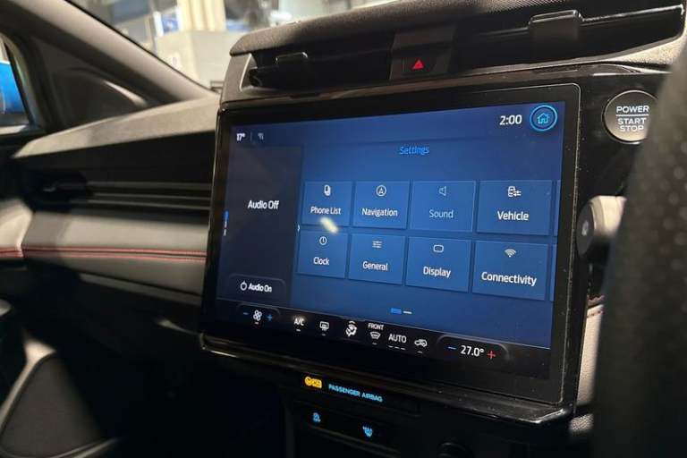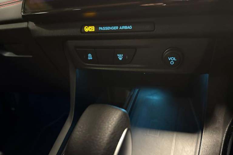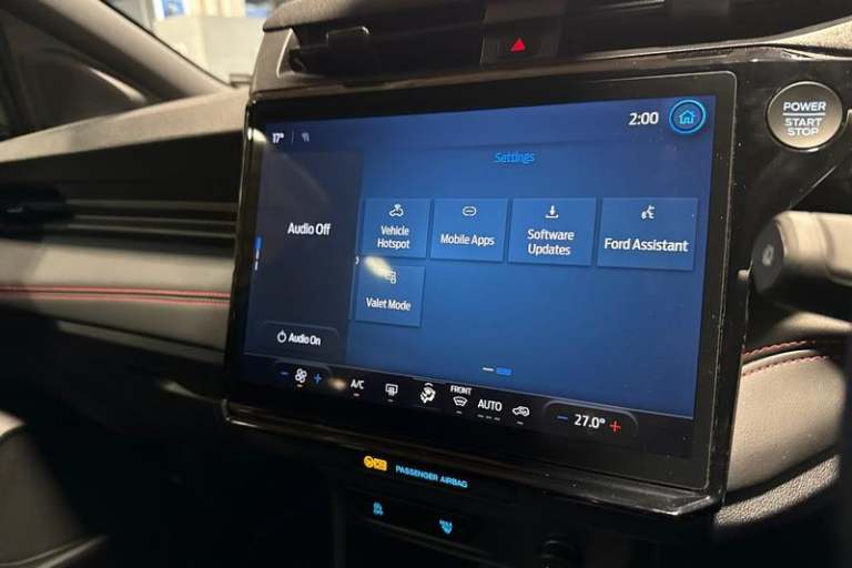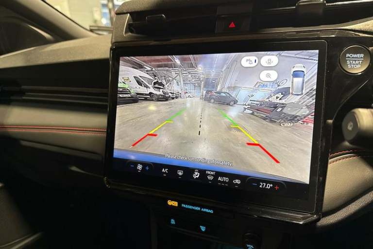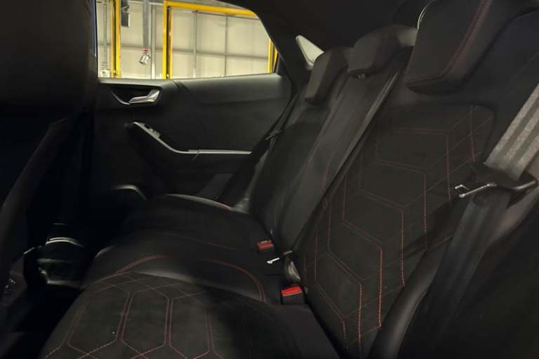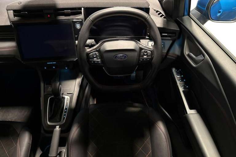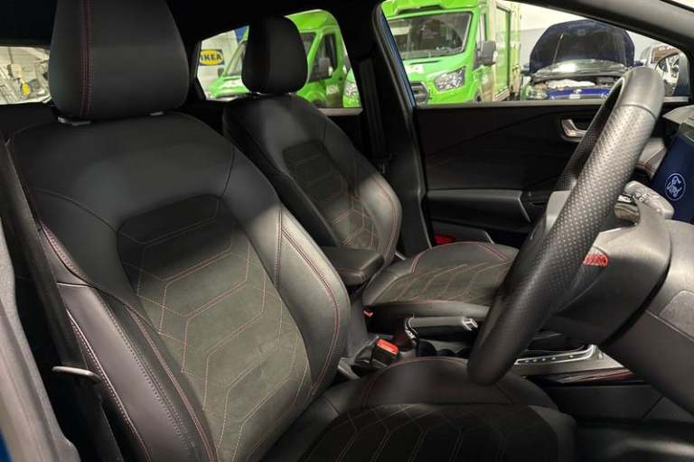 Driver impairment monitor, Emergency call service, Ford easy fuel, Full digital 12.8 instrument cluster, Lane keeping aid with lane departure warning, Power assist steering, Selectable drive modes(Normal, Eco, Sport, Slippery and Trail), Speed sign recognition, Automatic headlights with rain sensing wipers and auto high beam, Front fog lamps, LED daytime running lights, LED rear lamps, LED third brake light, Power foldable heated door mirrors with puddle lamps and puma logo protection, Quickclear heated windscreen, Rear privacy glass, Rear side wing doors, Rear wiper, ST-Line X body styling kit, 3 seat bench in 2nd row, 4 way lumbar support for passenger seat, Centre console with armrest and stowage, Electronic automatic temperature control (EATC), Ford megabox extended bootspace, Front and rear head restraints, Front floor mats, Manual 4 way driver seat adjust with lumbar adjustment, Single front passenger seat, ST-Line X Premium synthetic leather upholstery, 3 rear seatbelts, Child safety lock, Electronic stability control (ESC) and hill start assist, Pre-collision assist with autonomous emergency braking, pedestrian/cyclist detection & post-collision braking, Tyre pressure monitoring system (TPMS)