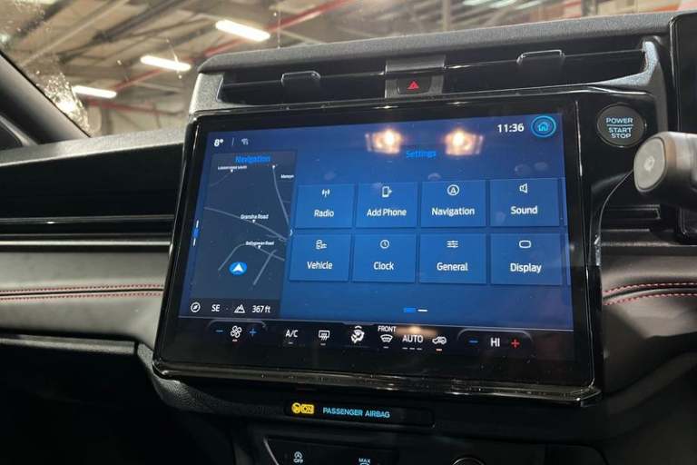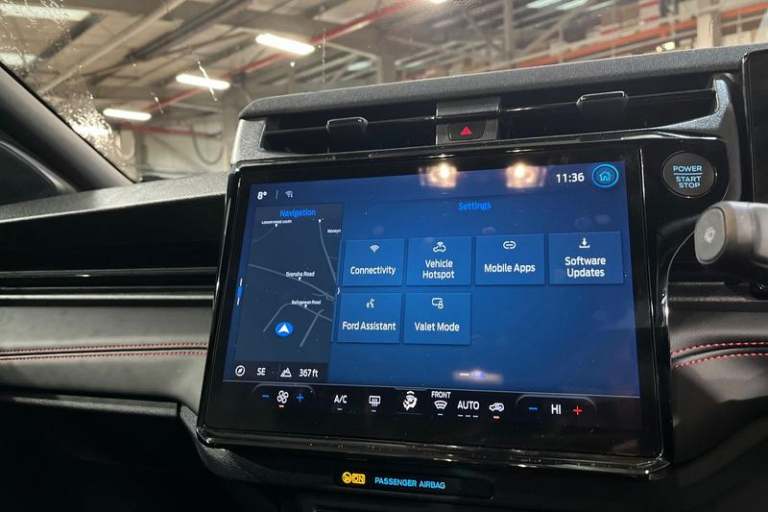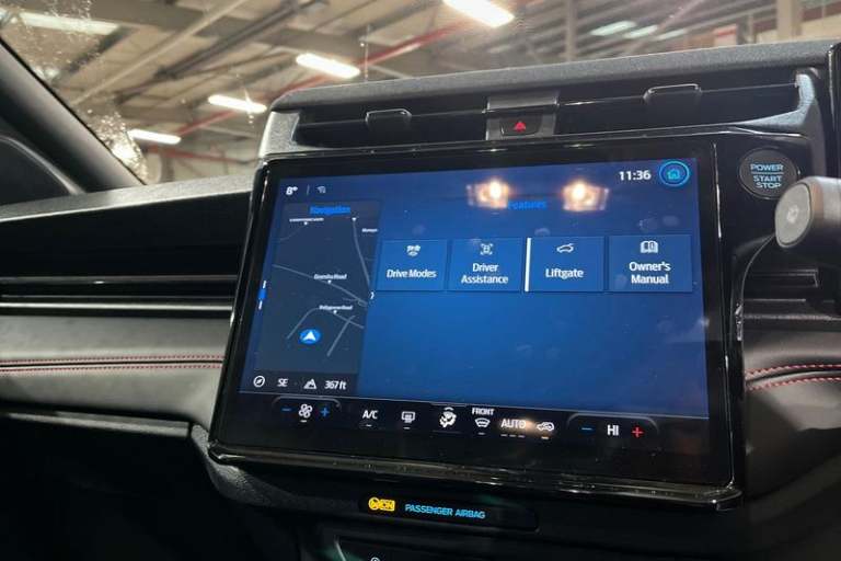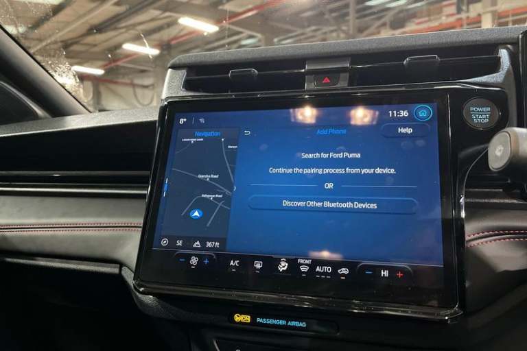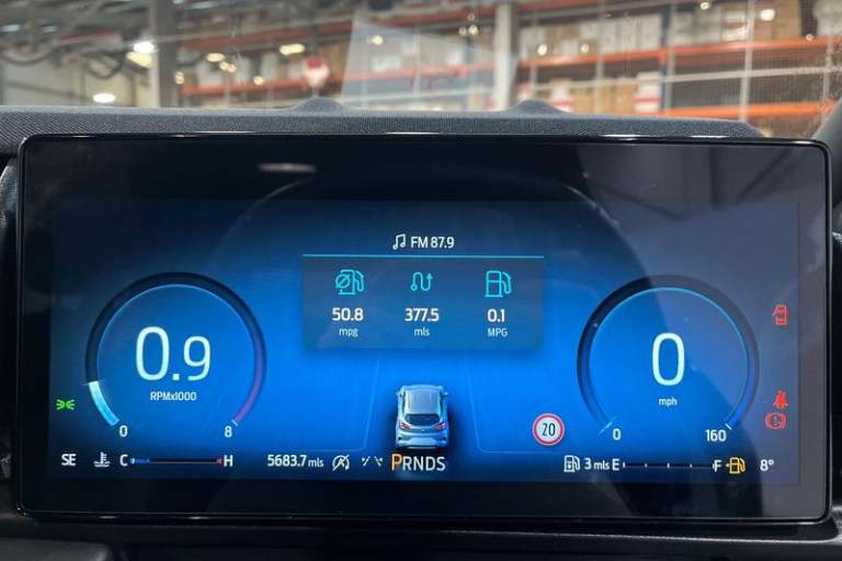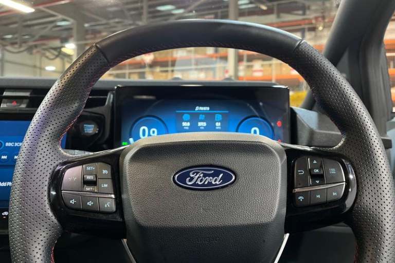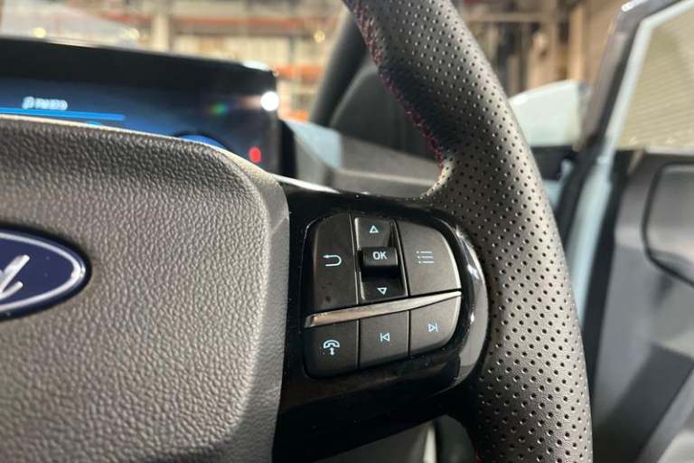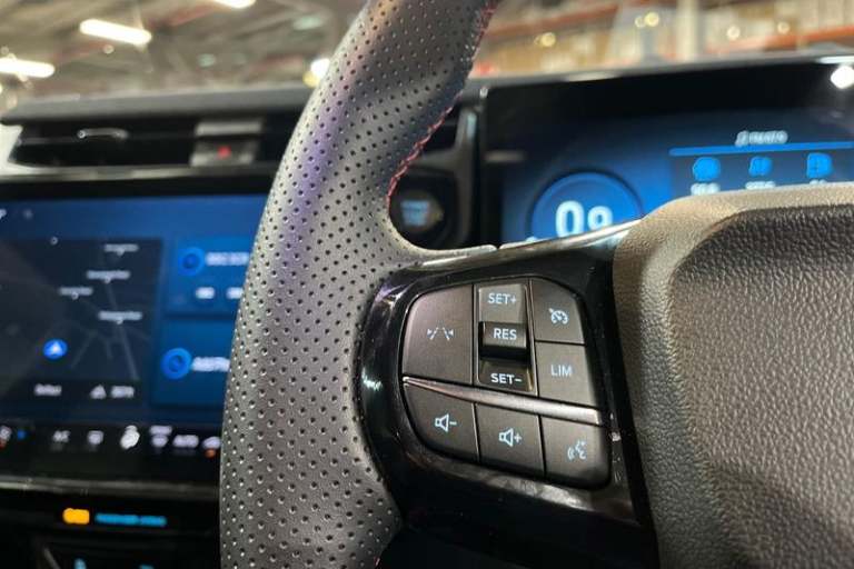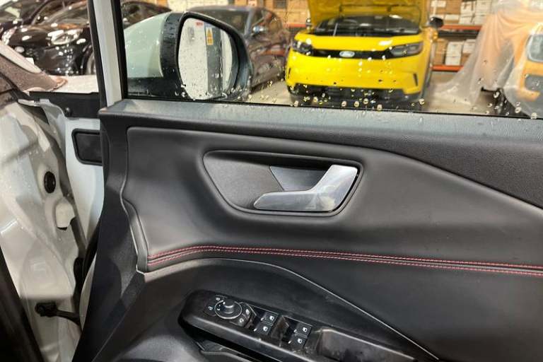 Driver impairment monitor, Emergency call service, Ford easy fuel, Full digital 12.8 instrument cluster, Lane keeping aid with lane departure warning, Power assist steering, Selectable drive modes(Normal, Eco, Sport, Slippery and Trail), Speed sign recognition, Automatic headlights with rain sensing wipers and auto high beam, Front fog lamps, LED daytime running lights, LED rear lamps, LED third brake light, Power foldable heated door mirrors with puddle lamps and puma logo protection, Quickclear heated windscreen, Rear privacy glass, Rear side wing doors, Rear wiper, ST-Line X body styling kit, 3 seat bench in 2nd row, 4 way lumbar support for passenger seat, Centre console with armrest and stowage, Electronic automatic temperature control (EATC), Ford megabox extended bootspace, Front and rear head restraints, Front floor mats, Manual 4 way driver seat adjust with lumbar adjustment, Single front passenger seat, ST-Line X Premium synthetic leather upholstery, 3 rear seatbelts, Child safety lock, Electronic stability control (ESC) and hill start assist, Pre-collision assist with autonomous emergency braking, pedestrian/cyclist detection & post-collision braking, Tyre pressure monitoring system (TPMS)