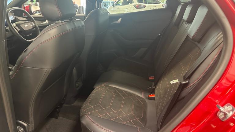 Thank you for enquiring on this lovely looking new shape Ford Puma finished in a premium colour called fantastic red. Sporty, bold and unmistakably modern, this Ford Puma mHEV ST-Line 155ps X combines coupe-inspired styling with a confident, athletic stance, featuring sharp lines, dynamic contours and distinctive ST-Line detailing that turn heads on every journey. Inside, the cabin blends comfort and convenience seamlessly, with a driver-focused digital instrument cluster, a wireless charging pad, and multiple USB ports keeping you connected and in control wherever you go. Stay seamlessly connected with Apple Car-Play and Android Auto. All to be enjoyed through the new, Sync 4 system and the built in Bang and Olufsen sound system. Safety and driver assistance are at the heart of the Puma, with lane keeping assist, cruise control, a rear camera, electric folding mirrors, and automatic lights and wipers all working together to make every drive smooth and effortless. Combining eye-catching design, smart technology and everyday practicality, the Puma ST-Line X delivers a thrilling, modern driving experience in a stylish, versatile package. **DUE TO HIGH STOCK TURNOVER, WE RECOMMEND RESERVING THE CAR ONLINE TO AVOID DISAPPOINTMENT**.Air Conditioning, Climate Control, Metallic Paint, Cruise Control, Satellite Navigation, Alloy Wheels, DAB Radio, Bluetooth, Parking Sensors, Heated Front Windscreen, Low Mileage, Full Service History, USB, Diamond Cut Alloy Wheels, Apple-Android Play, Rear Camera, Electric Opening Tailgate, Auto Lights, Electric Folding Mirrors& Rain Sensors, Front floor mats, Quickclear heated windscreen, Rear wiper, Rear privacy glass, Pre-collision assist with Autonomous emergency braking, Pedestrian/Cyclist detection & Post-collision braking, Electronic stability control (ESC) and hill start assist, Standard suspension, Power assist steering, Speed sign recognition, Driver alert system, Lane keeping aid, Ford easy fuel, Selectable drive modes(Normal, Eco, Sport, Slippery and Trail), Power lift tailgate, Wireless charger, Wireless charging pad, Emergency call service, Full digital 12.8"" instrument cluster