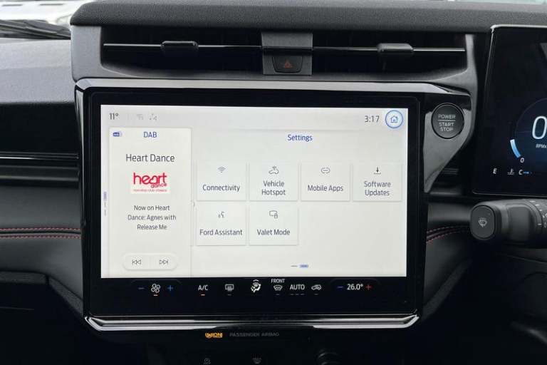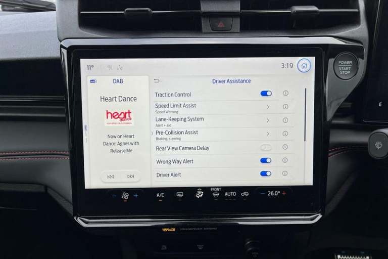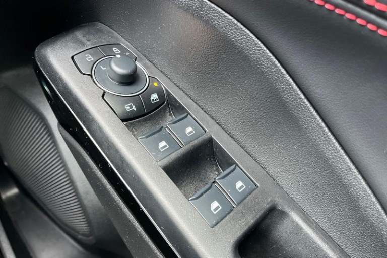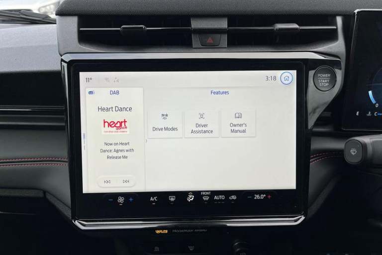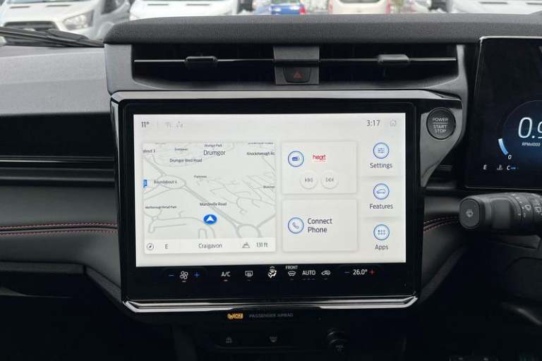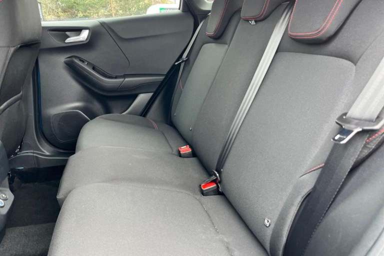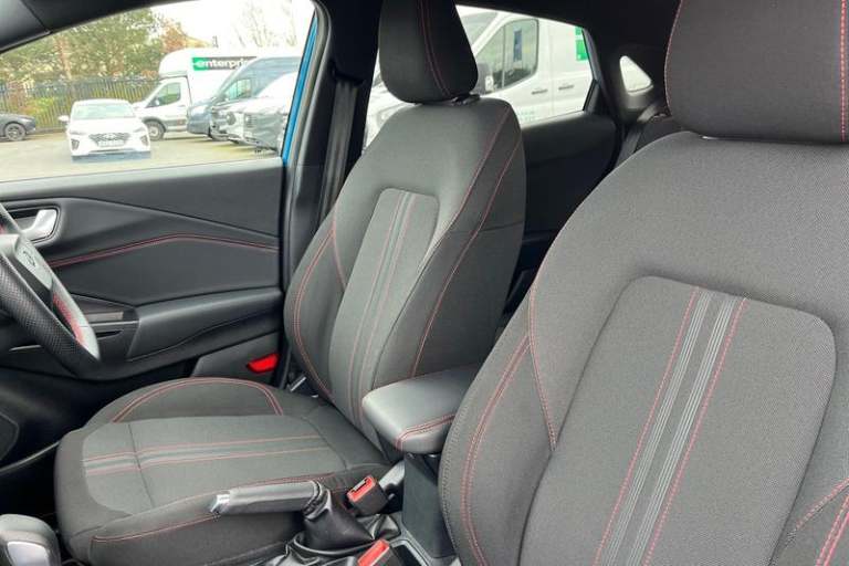 Driver alert system, Emergency call service, Ford easy fuel, Full digital 12.8 instrument cluster, Lane keeping aid, Power assist steering, Selectable drive modes(Normal, Eco, Sport, Slippery and Trail), Speed sign recognition, Automatic headlights with rain sensing wipers and auto high beam, Front fog lamps, LED daytime running lights, LED rear lamps, LED third brake light, Power foldable heated door mirrors with puddle lamps and puma logo protection, Quickclear heated windscreen, Rear privacy glass, Rear side wing doors, Rear wiper, ST-Line body styling kit with unique grille, 3 seat bench in 2nd row, Centre console with armrest and stowage, Electronic automatic temperature control (EATC), Ford megabox extended bootspace, Front and rear head restraints, Front floor mats, Manual 4 way driver seat adjust with lumbar adjustment, Single front passenger seat, ST- Line cloth trim with red stitching, 3 rear seatbelts, Child safety lock, Electronic stability control (ESC) and hill start assist, Pre-collision assist with autonomous emergency braking, pedestrian/cyclist detection & post-collision braking, Tyre pressure monitoring system (TPMS)