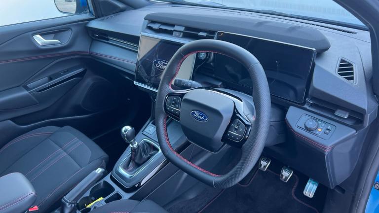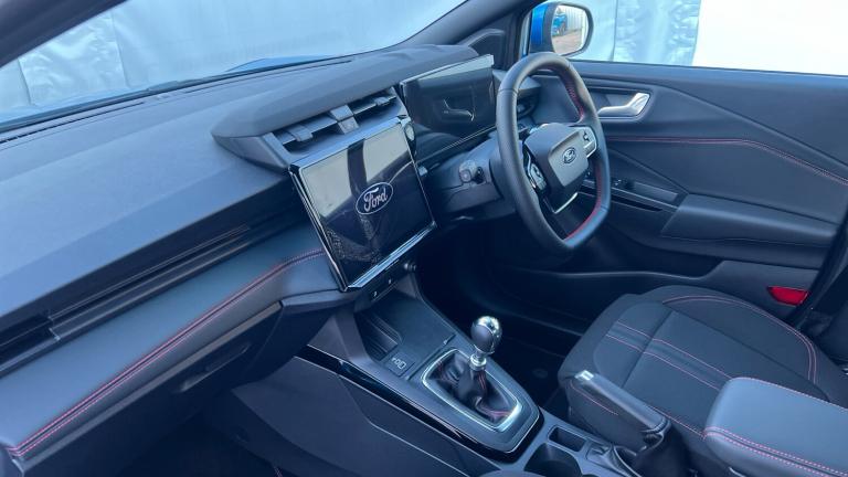 .Front floor mats, Quickclear heated windscreen, Rear wiper, Rear privacy glass, Pre-collision assist with Autonomous emergency braking, Pedestrian/Cyclist detection & Post-collision braking, Electronic stability control (ESC) and hill start assist, Sport suspension, Power assist steering, Speed sign recognition, Lane keeping aid with lane departure warning, Driver impairment monitor, Ford easy fuel, Selectable drive modes(Normal, Eco, Sport, Slippery and Trail), Emergency call service, Full digital 12.8"" instrument cluster, Power foldable heated door mirrors with puddle lamps and puma logo protection, 12"" landscape touchscreen display with wireless apple car play and android auto 6 speaker audio system, Ford SYNC4 with connected navigation, Ford pass connect and emergency assistance, Rear side wing doors, ST-Line body styling kit with unique grille, Front fog lamps, LED rear lamps, LED daytime running lights