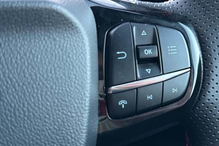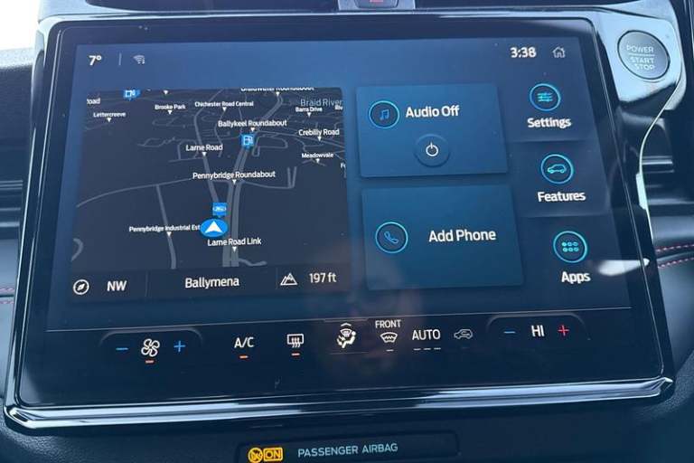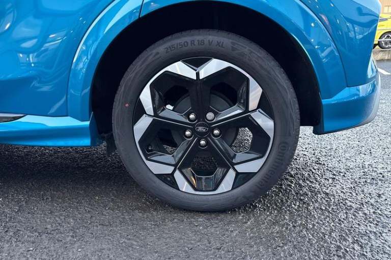 Driver impairment monitor, Emergency call service, Ford easy fuel, Full digital 12.8 instrument cluster, Lane keeping aid with lane departure warning, Power assist steering, Selectable drive modes(Normal, Eco, Sport, Slippery and Trail), Speed sign recognition, Automatic headlights with rain sensing wipers and auto high beam, Front fog lamps, LED daytime running lights, LED rear lamps, LED third brake light, Power foldable heated door mirrors with puddle lamps and puma logo protection, Quickclear heated windscreen, Rear privacy glass, Rear side wing doors, Rear wiper, ST-Line X body styling kit, 3 seat bench in 2nd row, 4 way lumbar support for passenger seat, Centre console with armrest and stowage, Electronic automatic temperature control (EATC), Ford megabox extended bootspace, Front and rear head restraints, Front floor mats, Manual 4 way driver seat adjust with lumbar adjustment, Single front passenger seat, ST-Line X Premium synthetic leather upholstery, 3 rear seatbelts, Child safety lock, Electronic stability control (ESC) and hill start assist, Pre-collision assist with autonomous emergency braking, pedestrian/cyclist detection & post-collision braking, Tyre pressure monitoring system (TPMS)