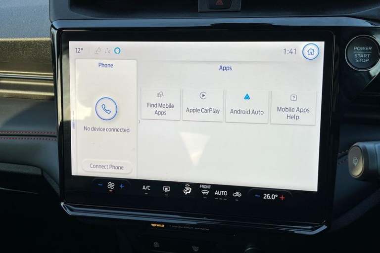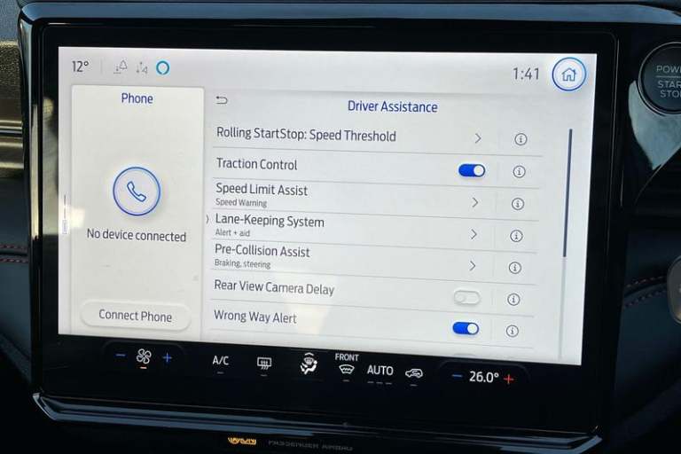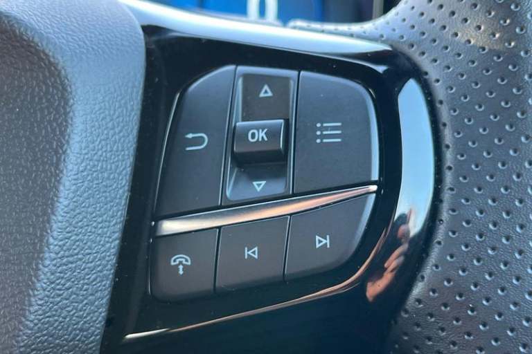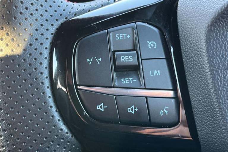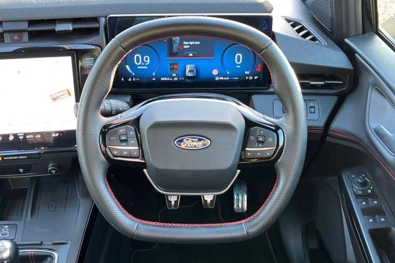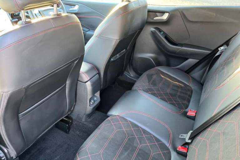 Driver impairment monitor, Emergency call service, Ford easy fuel, Full digital 12.8 instrument cluster, Lane keeping aid with lane departure warning, Power assist steering, Selectable drive modes(Normal, Eco, Sport, Slippery and Trail), Speed sign recognition, Automatic headlights with rain sensing wipers and auto high beam, Front fog lamps, LED daytime running lights, LED rear lamps, LED third brake light, Power foldable heated door mirrors with puddle lamps and puma logo protection, Quickclear heated windscreen, Rear privacy glass, Rear side wing doors, Rear wiper, ST-Line X body styling kit, 3 seat bench in 2nd row, 4 way lumbar support for passenger seat, Centre console with armrest and stowage, Electronic automatic temperature control (EATC), Ford megabox extended bootspace, Front and rear head restraints, Front floor mats, Manual 4 way driver seat adjust with lumbar adjustment, Single front passenger seat, ST-Line X Premium synthetic leather upholstery, 3 rear seatbelts, Child safety lock, Electronic stability control (ESC) and hill start assist, Pre-collision assist with autonomous emergency braking, pedestrian/cyclist detection & post-collision braking, Tyre pressure monitoring system (TPMS)