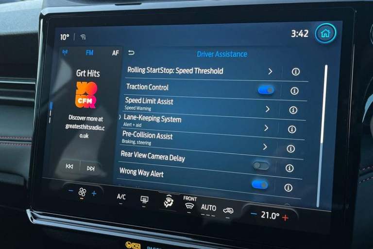 Driver impairment monitor, Emergency call service, Ford easy fuel, Full digital 12.8 instrument cluster, Lane keeping aid with lane departure warning, Power assist steering, Selectable drive modes(Normal, Eco, Sport, Slippery and Trail), Speed sign recognition, Automatic headlights with rain sensing wipers and auto high beam, Front fog lamps, LED daytime running lights, LED rear lamps, LED third brake light, Power foldable heated door mirrors with puddle lamps and puma logo protection, Quickclear heated windscreen, Rear privacy glass, Rear side wing doors, Rear wiper, ST-Line X body styling kit, 3 seat bench in 2nd row, 4 way lumbar support for passenger seat, Centre console with armrest and stowage, Electronic automatic temperature control (EATC), Ford megabox extended bootspace, Front and rear head restraints, Front floor mats, Manual 4 way driver seat adjust with lumbar adjustment, Single front passenger seat, ST-Line X Premium synthetic leather upholstery, 3 rear seatbelts, Child safety lock, Electronic stability control (ESC) and hill start assist, Pre-collision assist with autonomous emergency braking, pedestrian/cyclist detection & post-collision braking, Tyre pressure monitoring system (TPMS)