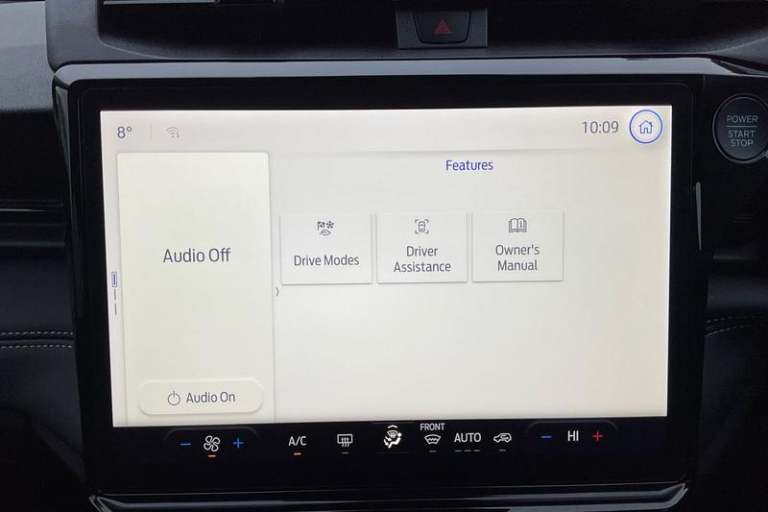 Driver impairment monitor, Emergency call service, Ford easy fuel, Full digital 12.8 instrument cluster, Lane keeping aid with lane departure warning, Power assist steering, Selectable drive modes(Normal, Eco, Sport, Slippery and Trail), Speed sign recognition, Automatic headlights with rain sensing wipers and auto high beam, Front fog lamps, LED daytime running lights, LED rear lamps, LED third brake light, Quickclear heated windscreen, Rear privacy glass, Rear side wing doors, Rear wiper, Titanium body styling kit, 3 seat bench in 2nd row, Centre console with armrest and stowage, Electronic automatic temperature control (EATC), Ford megabox extended bootspace, Front and rear head restraints, Front floor mats, Manual 4 way driver seat adjust with lumbar adjustment, Single front passenger seat, Titanium cloth upholstery, 3 rear seatbelts, Child safety lock, Electronic stability control (ESC) and hill start assist, Pre-collision assist with autonomous emergency braking, pedestrian/cyclist detection & post-collision braking, Tyre pressure monitoring system (TPMS)