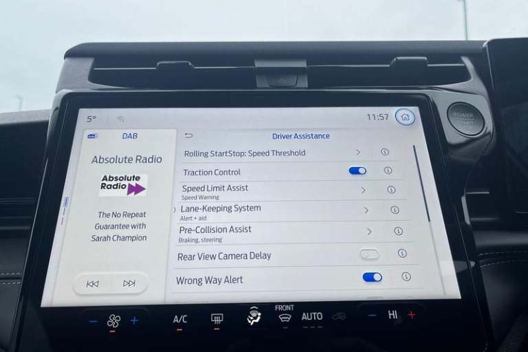 Driver impairment monitor, Emergency call service, Ford easy fuel, Full digital 12.8 instrument cluster, Lane keeping aid with lane departure warning, Power assist steering, Selectable drive modes(Normal, Eco, Sport, Slippery and Trail), Speed sign recognition, Automatic headlights with rain sensing wipers and auto high beam, Front fog lamps, LED daytime running lights, LED rear lamps, LED third brake light, Quickclear heated windscreen, Rear privacy glass, Rear side wing doors, Rear wiper, Titanium body styling kit, 3 seat bench in 2nd row, Centre console with armrest and stowage, Electronic automatic temperature control (EATC), Ford megabox extended bootspace, Front and rear head restraints, Front floor mats, Manual 4 way driver seat adjust with lumbar adjustment, Single front passenger seat, Titanium cloth upholstery, 3 rear seatbelts, Child safety lock, Electronic stability control (ESC) and hill start assist, Pre-collision assist with autonomous emergency braking, pedestrian/cyclist detection & post-collision braking, Tyre pressure monitoring system (TPMS)