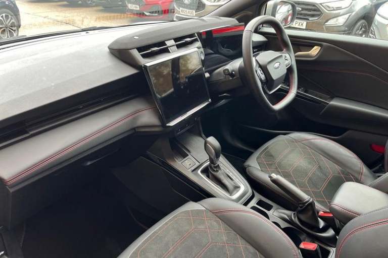 12in Landscape Touchscreen Display - Wireless Apple CarPlay and Android Auto - Premium B&O Audio System 10 Speakers - Ford SYNC Navigation - FordPass Connect and Emergency Assist, 18in Alloy Wheels - Machined Finish - Absolute Black, ABS - Anti-lock Braking System, Airbags - Driver and Front Passenger, Automatic Headlights with Rain-Sensing Wipers and Auto High Beam, Cruise Control with Intelligent Speed Assist, Drivers Manual 4-Way Seat Adjustment with Manual Lumbar Adjust, Electric Windows - Front and Rear, Electronic Automatic Temperature Control - EATC, Ford Keyfree System - Keyless Entry with Ford Power Starter Button, Ford MegaBox Extended Bootspace, Instrument Cluster - 12.8 Full Digital, LED Headlights with Daytime Running Lights, LED Rear Lights, Lane Keeping Aid with Lane Departure Warning, Passenger 4-Way Seat with Lumbar Adjustment, Power Lift Tailgate, Power Steering, Power-Foldable Heated Door Mirrors with Puddle Lamps and Puma Logo Projection, Pre-Collision Assist with Autonomous Emergency Braking and Pedestrian-Cyclist Detection, Privacy Glass - Rear, Quickclear Heated Windscreen, Rear View Camera with Rear Parking Sensors, ST-Line Body Styling Kit with Unique Grille and Large Body Colour Rear Spoiler, Selectable Driving Modes - Normal - Eco - Sport - Slippery and Trail, Sports Suspension, Tyre Inflation Kit, Wireless Charging Pad