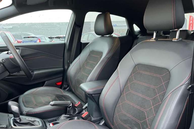 12in Landscape Touchscreen Display - Wireless Apple CarPlay and Android Auto - Premium B&O Audio System 10 Speakers - Ford SYNC Navigation - FordPass Connect and Emergency Assist, 18in Alloy Wheels - Machined Finish - Absolute Black, ABS - Anti-lock Braking System, Airbags - Driver and Front Passenger, Automatic Headlights with Rain-Sensing Wipers and Auto High Beam, Cruise Control with Intelligent Speed Assist, Drivers Manual 4-Way Seat Adjustment with Manual Lumbar Adjust, Electric Windows - Front and Rear, Electronic Automatic Temperature Control - EATC, Ford Keyfree System - Keyless Entry with Ford Power Starter Button, Ford MegaBox Extended Bootspace, Instrument Cluster - 12.8 Full Digital, LED Headlights with Daytime Running Lights, LED Rear Lights, Lane Keeping Aid with Lane Departure Warning, Passenger 4-Way Seat with Lumbar Adjustment, Power Lift Tailgate, Power Steering, Power-Foldable Heated Door Mirrors with Puddle Lamps and Puma Logo Projection, Pre-Collision Assist with Autonomous Emergency Braking and Pedestrian-Cyclist Detection, Privacy Glass - Rear, Quickclear Heated Windscreen, Rear View Camera with Rear Parking Sensors, ST-Line Body Styling Kit with Unique Grille and Large Body Colour Rear Spoiler, Selectable Driving Modes - Normal - Eco - Sport - Slippery and Trail, Sports Suspension, Tyre Inflation Kit, Wireless Charging Pad