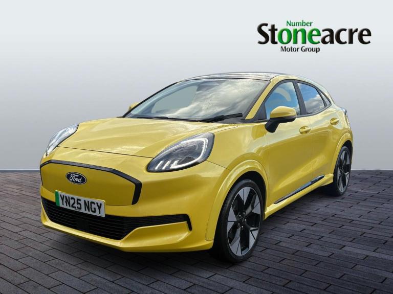 Boasting exceptionally low mileage for its age, this 2025 Ford Puma Gen-E Standard Range Premium presents a superb opportunity. As an electric vehicle, it offers a 53 kWh battery with a maximum range of 226 miles, and a full charge at home using a 7kW charger takes just 3 hours and 40 minutes. This Ford manufacturer approved vehicle comes with a host of premium features, including an openable Panorama Roof, striking 19 inch alloy wheels, and a 12 inch landscape touchscreen display supporting wireless Apple CarPlay and Android Auto. Enjoy an immersive audio experience with the Premium B-O Audio System featuring 10 speakers, all managed through Ford SYNC with Connected Navigation, FordPass Connect, and Emergency Assistance. Convenience is further enhanced with Keyless Entry and a Power Start Button, all part of the integrated Comfort Pack.The generous boot space in this Ford Puma Gen-E is a standout feature, offering practicality for everyday use and longer journeys. The Premium trim level ensures a refined driving experience, complemented by the advanced technology and comfort features. This vehicle's low mileage of only 3406 miles indicates it has been lightly used, suggesting it is in excellent condition compared to other similar models on the market. The combination of its electric powertrain, extensive range, rapid charging capability, and premium specification makes this Puma Gen-E a compelling choice for those seeking an efficient and well equipped compact SUV.