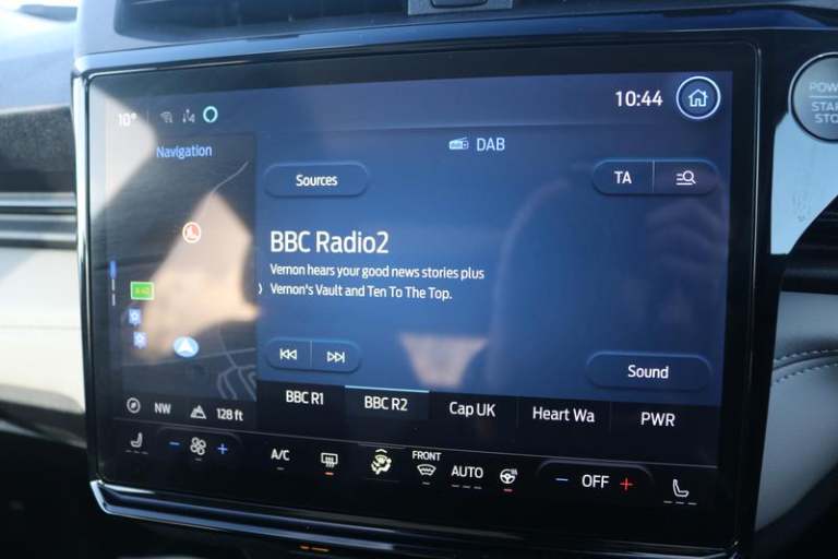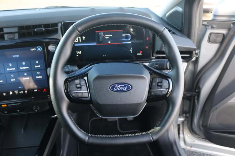 Locking wheel nuts, Quickclear heated windscreen, Rear wiper, Standard suspension, Centre console, Privacy glass, 3 rear seatbelts, Front and rear head restraints, Driver's seat with lumbar adjustment, Rear view camera, LED rear lamps, Tyre repair kit, LED daytime running lights, 4 way manually adjustable drivers seat, Child safety lock, Auto high beam, 3 seat bench in 2nd row, Autonomous emergency braking, Rear parking sensors, Wireless charging, LED third brake light, Power assist steering, Electric parking brake, Auto dimming interior rear view mirror, Front disc brakes and rear drum brakes, Lane keeping aid, Speed sign recognition, Acoustic laminated windscreen, Anti-lock brake system (ABS), Tyre pressure monitoring system (TPMS), Auto headlights, Cruise control with Intelligent speed assist, Rain sensing wipers, Multi colour ambient lighting, Selectable drive modes(Normal, Eco, Sport, Slippery and Trail), Pre collision assist system, Front and rear electric windows with one-touch up/down, Driver impairment monitor, Emergency call service, Lane departure warning, Standard foot pedals, Premium front floor mats, Power lift tailgate, Pedestrian/cyclist detection & post-collision braking, Ford Power start button, Active grille shutters, Wrong way alert, Thatcham alarm with power door dead locks, Electronic automatic temperature control (EATC), Single front passenger seat, Rear side wing doors, Automatic windshield wiper, Sensico steering wheel, Deluxe headliner, Apple CarPlay