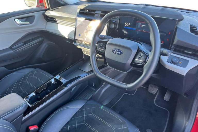 12in Landscape Touchscreen Display with Wireless Apple CarPlay and Android Auto, 18in Alloy Wheels, Automatic Windscreen Wipers with Rain Sensing and Autodimming Interior Rear Mirror, Blue Oval Charge Network Access - Lifetime Access, Comfort Pack, Cruise Control with Intelligent Speed Limiter, Electronic Automatic Temperature Control - EATC, Emergency Assistance, Ford SYNC with Connected Navigation, FordPass Connect, Front Door Scuff Plates with Logo, Full Digital 12.8in Instrument Cluster and Column Stalk Shifter, Gigabox and Frunk Loadspace, Glare-Free Matrix LED Headlamps with Auto High Beam, Keyless Entry and Power Start Button, LED Rear Lamps, Lane Keeping Aid with Lane Departure Warning, Manual 4-Way Driver Seat Adjust with Lumbar Support, Manual 4-Way Driver Seat Including Height with Lumbar Adjustment, Multi-Colour Ambient Lighting, Power Lift Tailgate, Power-Foldable Heated Door Mirrors with Puddle Lamps and Puma Logo Projection, Pre-Collision Assist with Autonomous Emergency Braking - Pedestrian-Cyclist Detection - Driver Impairment Monitor and Post-Collision Braking, Premium B&O Audio System with 10 Speakers, Quickclear Heated Windscreen, Rear Privacy Glass, Rear View Camera with Rear Parking Sensors, Selectable Drive Modes, Unique Aerodynamically Styled Front Bumper - Rear Bumper and Spoiler, Wireless Charging Pad