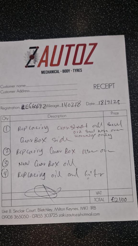 ✅Recent Service: £2,100 spent (Sept 2025) on major repairs (Crankshaft seal/Gearbox/Service). Invoice included.