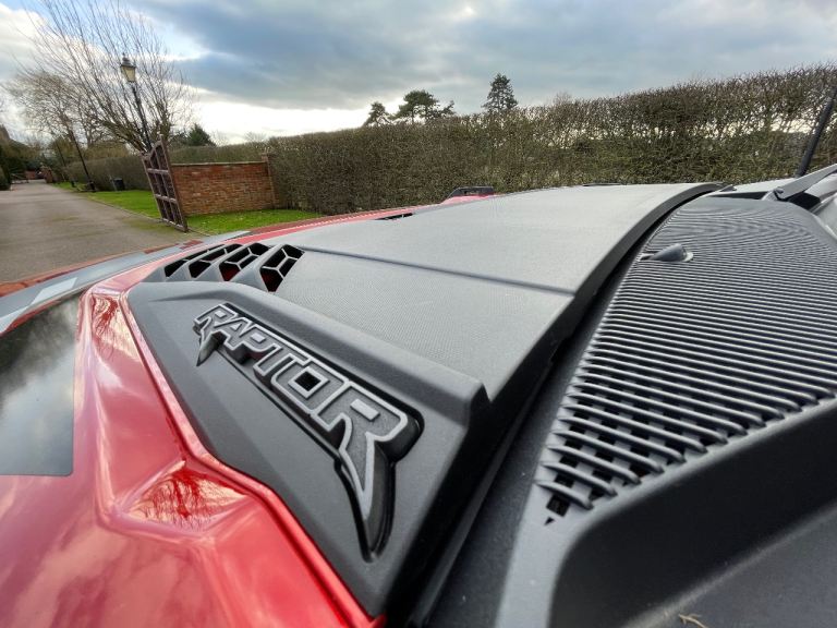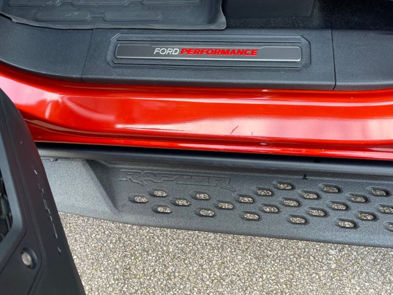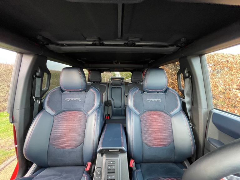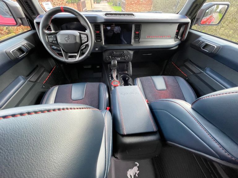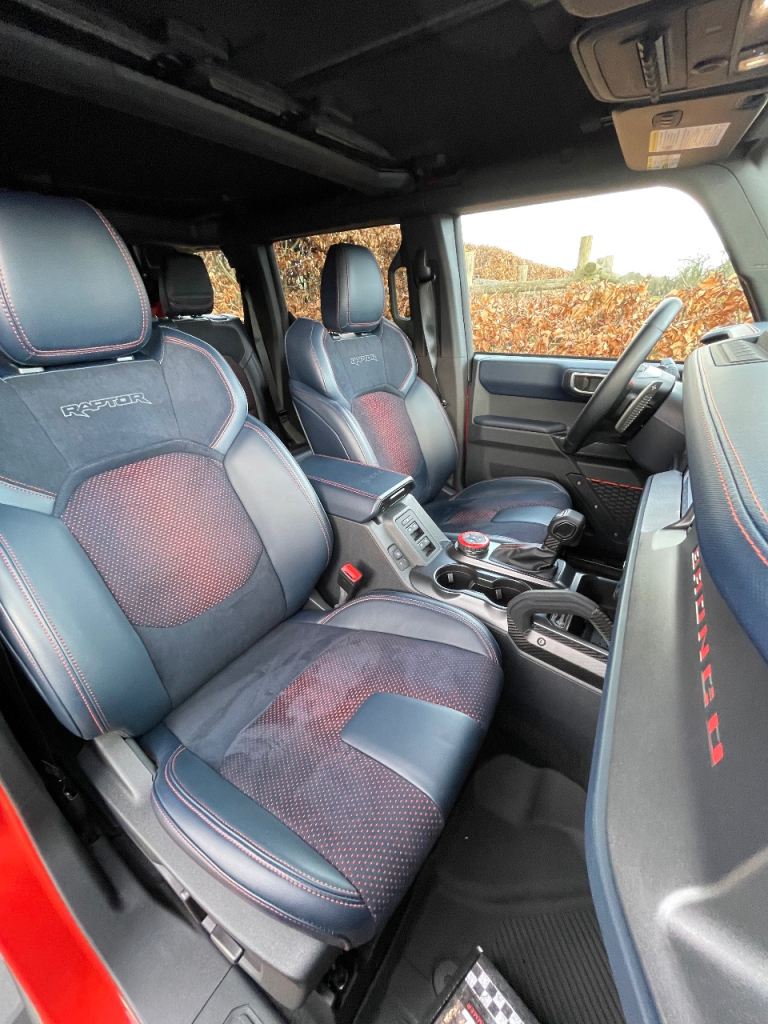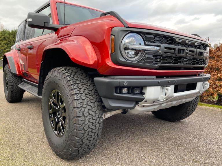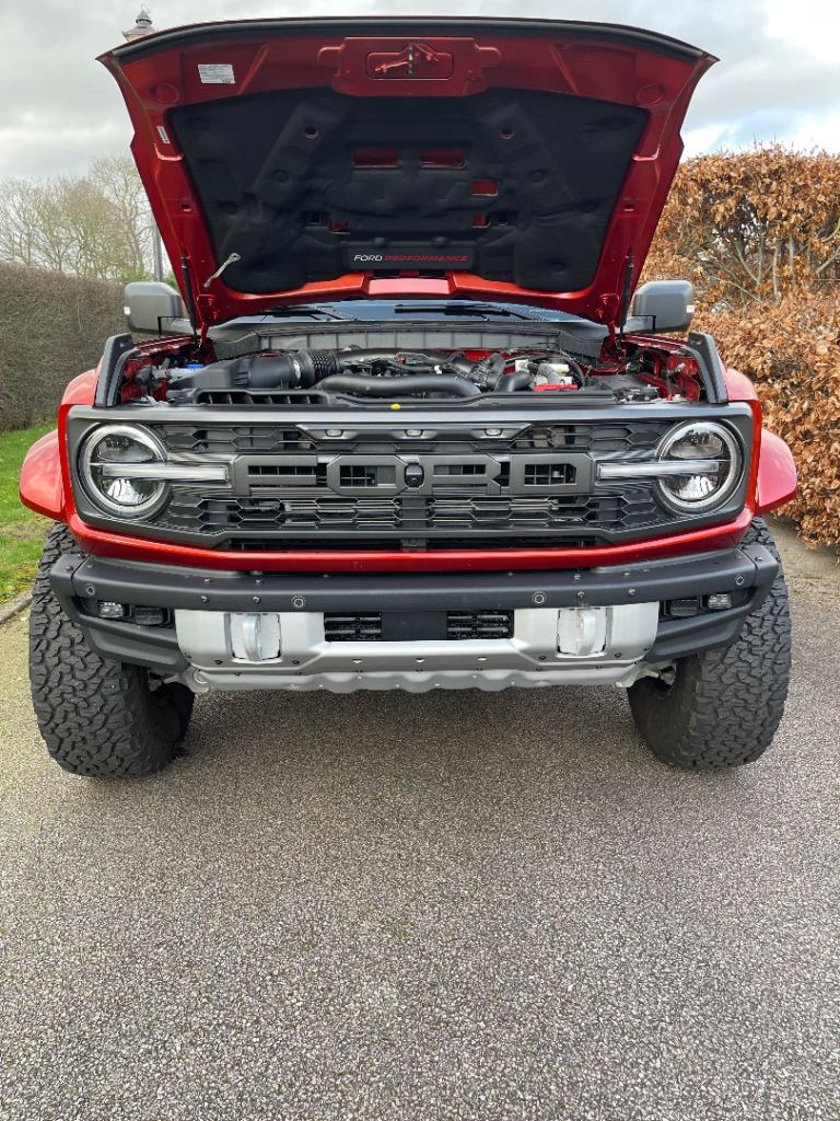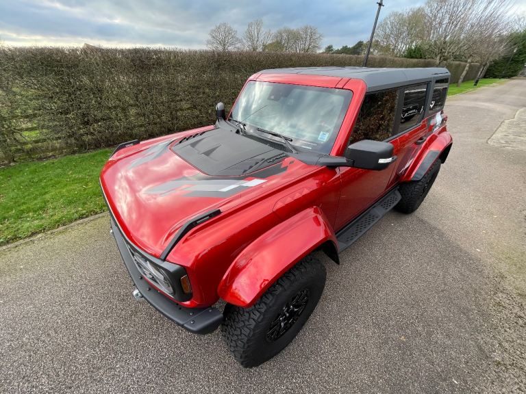 New to the U.K and available for immediate registration and sale- Ford Bronco Raptor in Hot Pepper Red — the ultimate off-road beast that turns heads and devours trails.