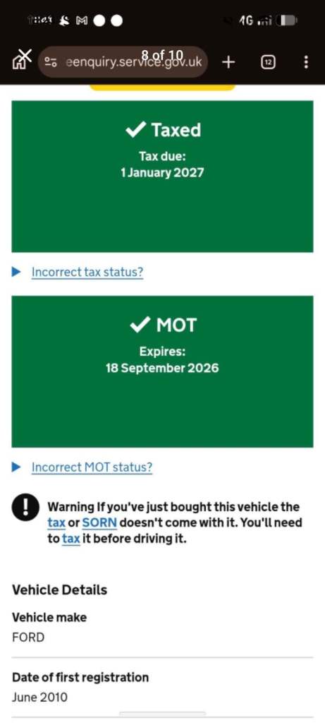 This vehicle has not been reported stolen, scrapped, exported or flagged as unroadworthy.