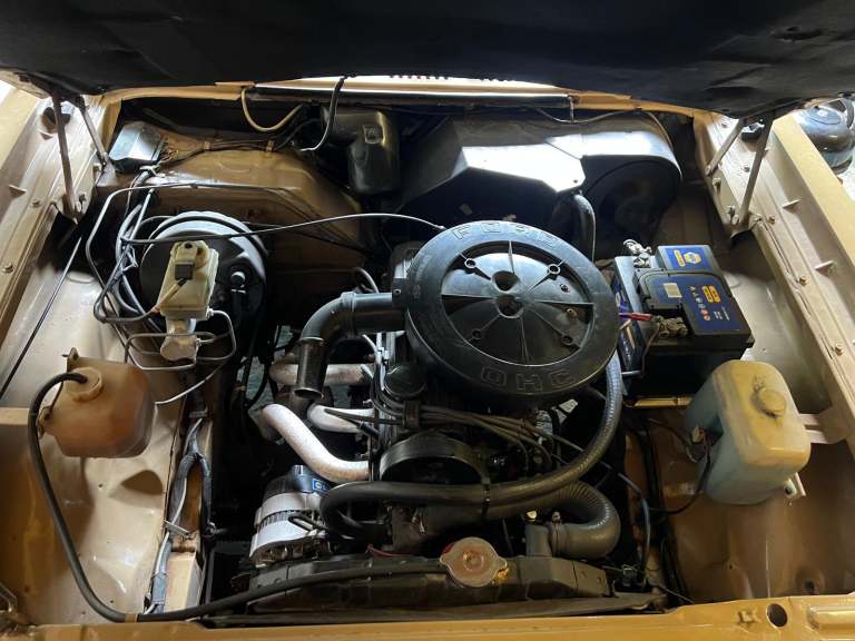 The 'Solar Gold' body work contrasts so very well with the chocolate brown interior and brown lower door sections and being the coveted Ghia model, she has a vinyl roof too. The exterior is truly excellent as is the interior too. The low mileage means the interior is still fresh and barely worn. She presents very nicely under the bonnet too. She is car show ready or could be your daily driver.