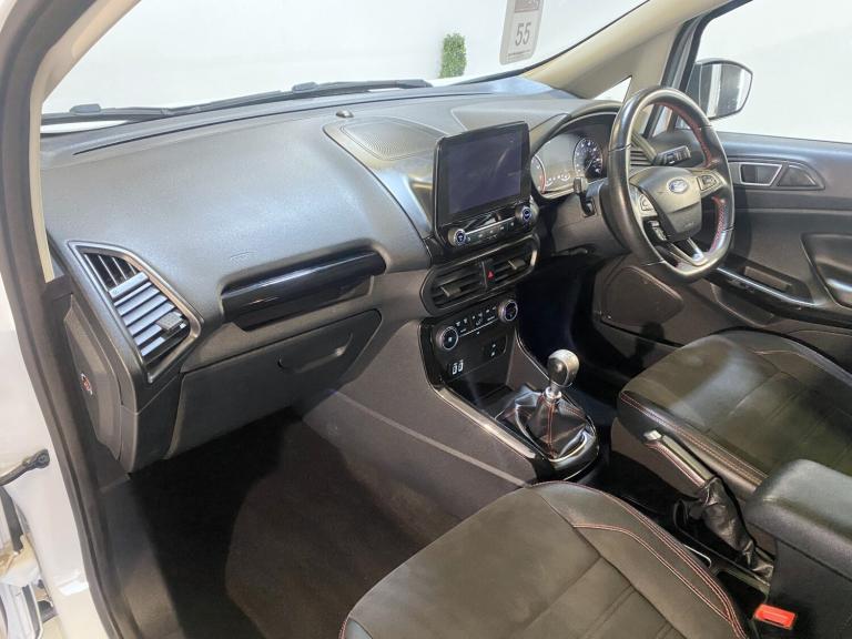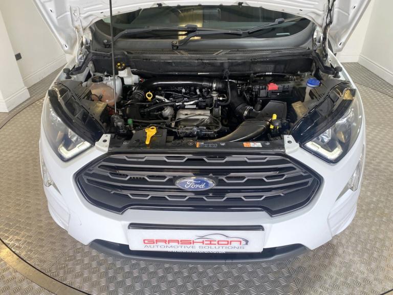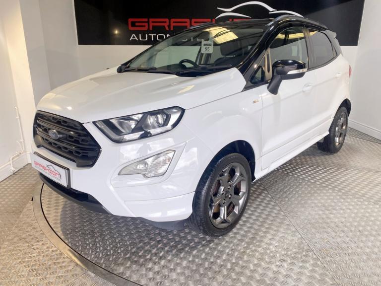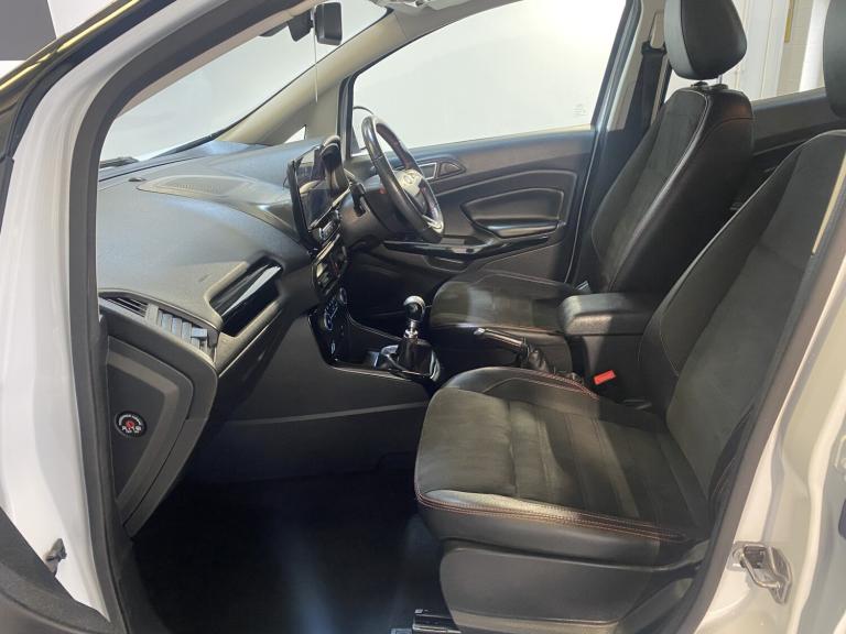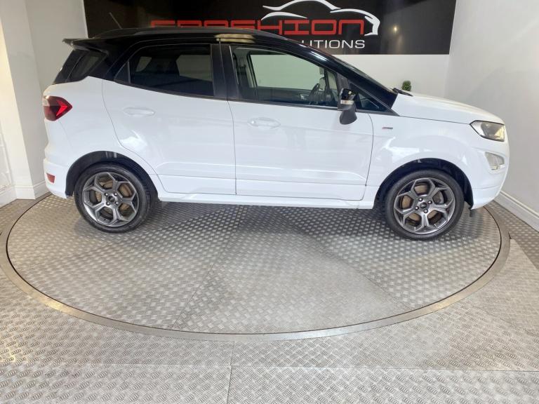 ONLINE AND PHONE ENQUIRIES ONLY ON SUNDAYS CALL 01302 888346 TO SPEAK DIRECTLY TO US. TOP OF THE RANGE FORD ECO SPORT 1.0 140 ST LINE 5 DOOR FINISHED IN WHITE WITH GREAT SERVICE HISTORY - 6 SERVICE STAMPS IN THE SERVICE BOOK, THE LAST ONE CARRIED OUT AT 57,191 MILES AND HAS MOT THAT RUNS UNTIL 20TH FEBRUARY 2027 WITH NO ADVISORY'S (BOTH TYRES ADVISED HAVE NOW BEEN REPLACED). SPECIFICATION INCLUDES ALLOY WHEELS - FACTORY FITTED SATELLITE NAVIGATION - ALLOY WHEELS - CRUISE CONTROL - BLUETOOTH PHONE HANDS FREE - APPLE ANDROIDCAR PLAY - AUTOMATIC CLIMATE CONTROL - REAR PARKING SENSORS WITH CAMERA - DAB RADIOCD PLAYER WITH MEDIA CONNECTIVITY - ST LINE KIT BODYKIT - DAYTIME RUNNING LIGHTS - AUTO LIGHTS - REAR SPOILER - KEYLESS START - SPORTS PEDALS - HALF LEATHER SEATS - HEATED FRONT WINDSCREEN - REMOTE CENTRAL DOOR LOCKING WITH 2 KEYS - ELECTRIC WINDOWS AND MIRRORS - TINTED GLASS - 6 SPEED GEARBOX AND FACTORY ALARM AND IMMOBILIZER. A FULLY HPI CLEAR CAR WITH CERTIFICATE PROVIDED. TO VIEW AND DRIVE AWAY TODAY CALL 01302 888346. NO ADMIN FEES (EXCEPT BROKERS).