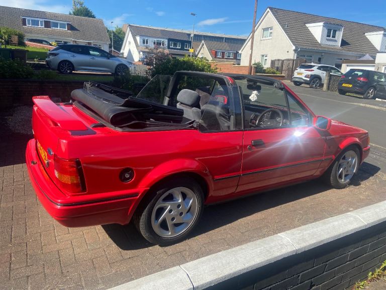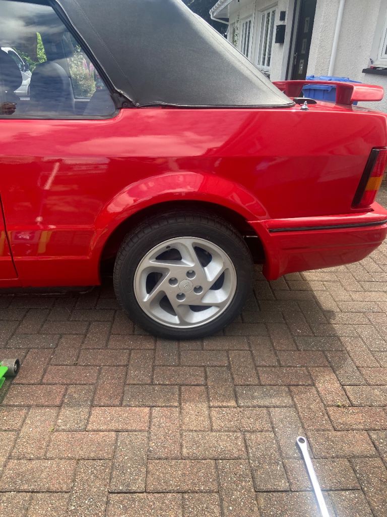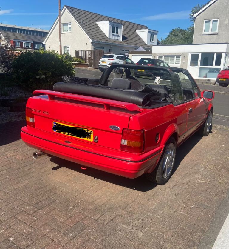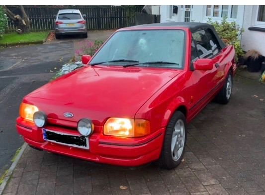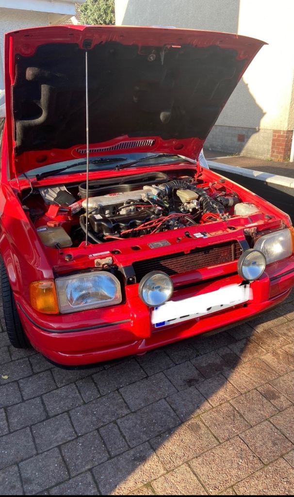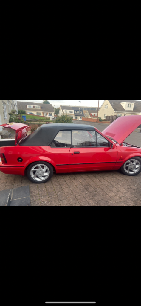 Ford escort XR3i, 1987. I have owned car now for a couple of years, it’s been kept in garage up until now . Dont have the space for it. A lot of money spent on car . Timing belt, resprayed in radiant red. Valve stem oil seals done. New exhaust . New indicator lenses. Alloys and brand new tyres. Original Ford cassette. Hood cover present. Suspension work done. Couple of bits of welding been done where needed.