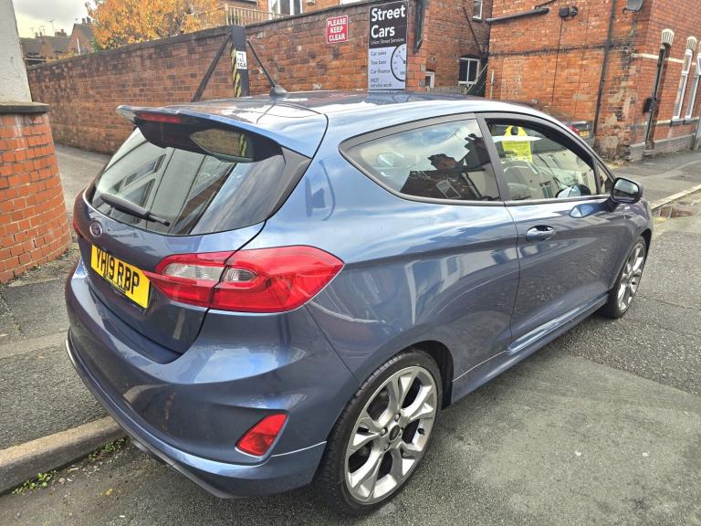This 2019 Ford Fiesta ST Line is presented with full ford service history,recent new brake discs and pads,tyres and a clear vehicle history report, offering you peace of mind. This popular hatchback is equipped with a 1.0 litre petrol engine and meets Euro 6 emissions standards, contributing to its low CO2 emissions. The ST Line trim enhances its sporty appeal, and it rides on stylish 18 inch ST Line 5 spoke alloy wheels in a Rock Metallic finish with a machined edge. Inside, you'll find manual air conditioning to keep you comfortable., , This Fiesta ST Line also boasts a suite of advanced driver aids. The Blind Spot Information System with Cross Traffic Alert, including Blind Spot Assistance, helps you navigate busy roads safely. The Driver Assistance Pack adds Adaptive Cruise Control, which works alongside standard Cruise Control to make longer journeys more relaxed, this Ford Fiesta ST Line offers a responsive driving experience that sets it apart from many other vehicles in its class. Black Cloth interior, 5 seats, Metallic Blue, 3 owners, Upgrades - Blind Spot Information System with Cross Traffic Alert, Ford Navigation System with Ford SYNC 3 - Apple CarPlay and Android Auto, 18in Alloy Wheels - ST-Line 5-Spoke - Rock Metallic - Machined Finish, Cruise Control, Driver Assistance Pack, City Pack, Standard Features - Rock Metallic, Air Conditioning - Manual, Airbags - Driver and Front Passenger, Airbags - Front Side Impact, Airbags - Front and Rear Side Curtain, Anti-Lock Braking System - ABS with Electronic Brake Force Distribution - EBD, Black Belt Line Finisher, Centre Console with Two Cupholders and 12V Power Point, Courtesy Light - Front Map Light and Rear - Overhead LED, Door Handles - Body Colour, Door Lever - Chrome Finish, Door Mirrors - Heated - Electric - Integrated Side Indicators - Body Coloured, EPAS - Electric Power Assisted Steering, Emergency Brake Warning - Automatic Hazard Warning Lights, Enhanced Electronic Stability Control - ESC with Traction Control - Emergency Brake Assist - EBA - Hill Start Assist - HSA and Trailer Sway Control, Ford Easy-Fuel Capless Refuelling System, Ford SYNC with Touchscreen - DAB Radio - Apple CarPlay and Android Auto, Front Bumper - Unique ST-Line, Front Door Threshold Plates - ST-Line, Front Seat - Drivers Manual Height and Fore-Aft Adjustment, Front Seats - Sports Style, Gearshift Knob - Leather-Trimmed with Aluminium Insert, Glovebox - Illuminated, Headlights - Automatic On-Off, Headlights - Halogen Projector with Black Bezel and Dedicated LED Daytime Running Lights, Headliner - Black Woven, Headliner - Woven-Dark, IPS - Intelligent Protection System, Keyless Start with Ford Power Start Button, Large Rear Spoiler - Body Colour with Centre High Mounted Stop Light, Leather-Trimmed Handbrake, MyKey, NCAP Pack, Overhead Console - Sunglasses Holder, Quickclear Heated Windscreen, Rear Bumper - Unique ST-Line, Rear Fog Lamps, Rear Lights - Non-LED, Rear Seat - 60-40 Split Back and Cushion, Remote Central Locking and Engine Immobiliser, ST-Line Front Fog Lamps with Cornering Lights, ST-Line Side Skirt Body Mouldings - Body Colour, Seats - ISOFIX Mounting Provision for Child Seats, Sports Pedals, Sports Tuned Suspension, Steering Column - Rake and Reach Adjustment, Steering Wheel - ST-Line 3-Spoke Leather Trimmed Flat Bottomed, Tailgate Wash-Wipe, Thatcham Category 1 Alarm, Trip Computer, Tyre Pressure Monitoring System - TPMS, Tyre Repair Kit, Unique ST-Line Upper Grille and Full Bodystyling Kit with ST-Line Wing badges, HPI CLEAR,FREE AA ROADSIDE BREAKDOWN COVER WITH WARRANTY,EXTENDED WARRANTIES AVAILABLE,PART EXCHANGE AND FINANCE AVAILABLE AT SCREENPRICE, ALL MAJOR DEBIT/CREDITCARDS TAKEN *HIGHLY RATED AWARD WINNING BUSINESS WHO ARE FCA REGULATED AND SAF APPROVEDSAMEDAY NIL DEPOSIT FINANCE AVAILABLE (T&C'S APPLY) APPLY ONLINE AT WWW.STREETCARS-CREWE.CO.UK, £7,790