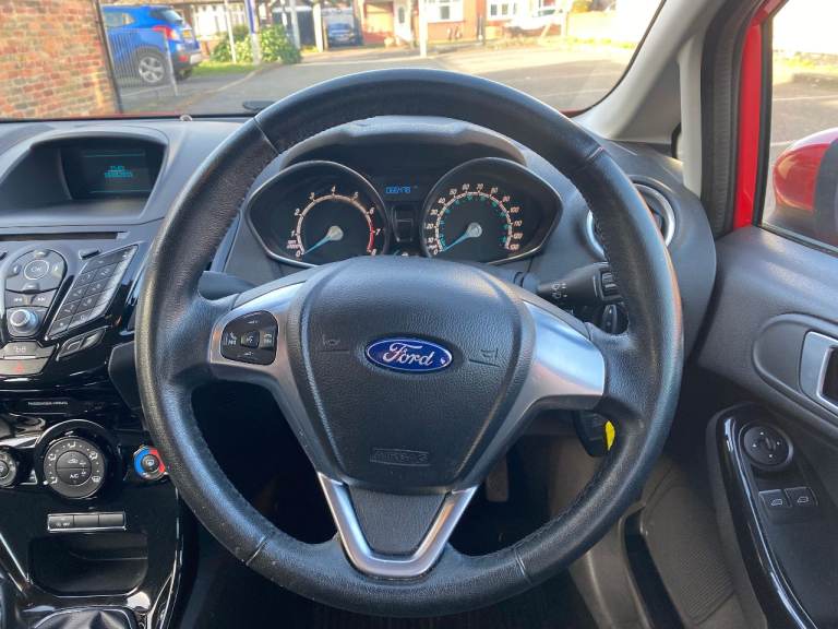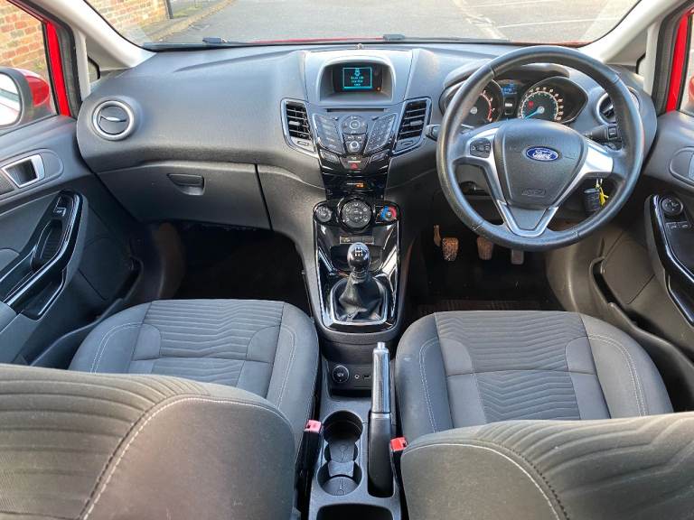 DARVIC AUTOS are pleased to offer this ford fiesta 1.0 zetec in race red 5 door 5 speed 2015 in vgc inside/out only 66480 mls with good service history two keys new cambelt new wet belt new oil and filter service all work just done by us guarantee and warranty given we are a mechanics garage in elm park hornchurch essex comes with very clean cloth interior blue tooth connection auto stop start usb aux ports e/windows e/mirrors trip comp excellent engine gearbox and clutch looks and drives lovely no faults px poss warranty given