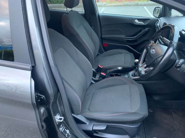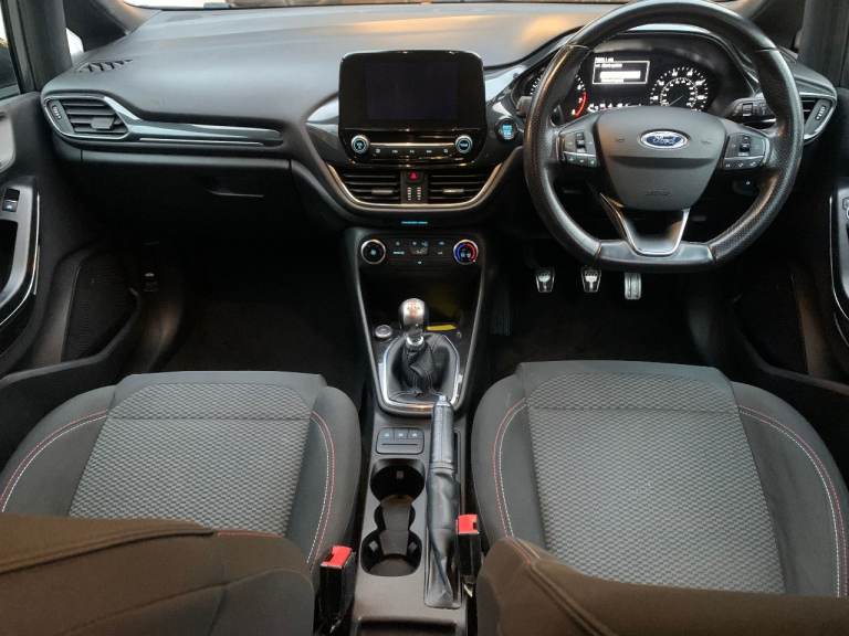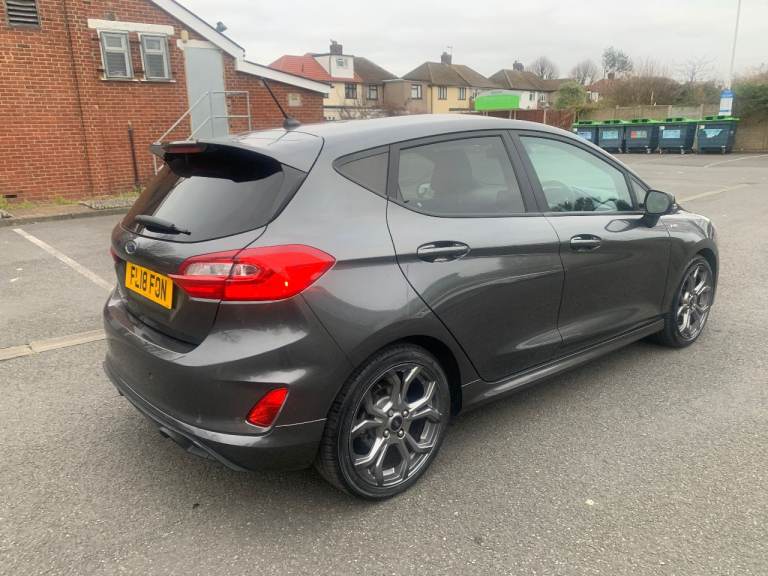 DARVIC AUTOS are pleased to offer this ford fiesta 1.0t ecoboost st line 2018 140 ps in lovely condition inside/out only 70798 mls with fsh new cambelt new wet belt new rear discs and pads two new front tyres oil and filter service all work just done by us guarantee and warranty given we are a mechanics garage in elm park hornchurch essex comes with very clean cloth interior pop up media centre drivers information centre auto stop start eco mode tcs auto lights daytime running lights air con climate control cruise control steering wheel functions aux usb ports excellent engine gearbox and clutch 17 inch st line alloys tinted rear windows looks and drives superb no faults px poss warranty given