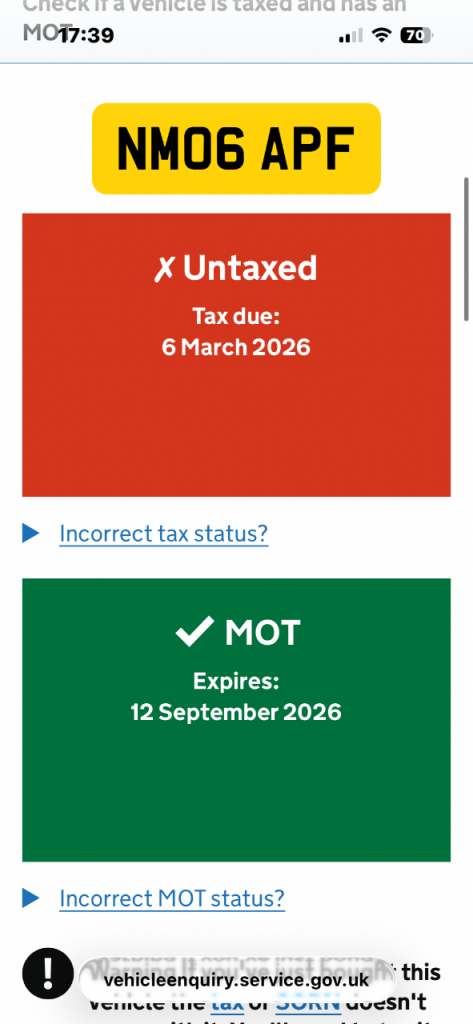 This vehicle has not been reported stolen, scrapped, exported or flagged as unroadworthy.