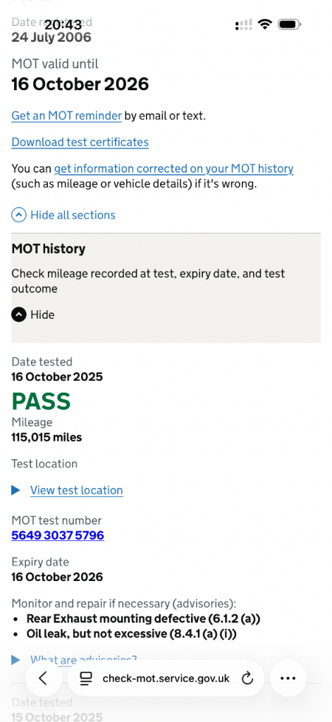 Mot expires 16/10/26
