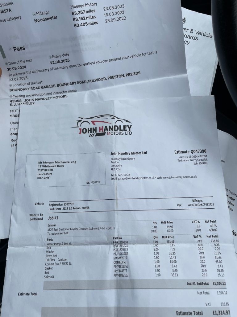 Wet belt done with (Invoices on last pic)
