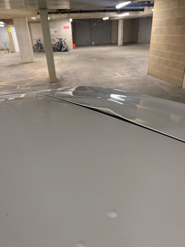 Little dent on the front right side and on the top. Pictures are taken of each.