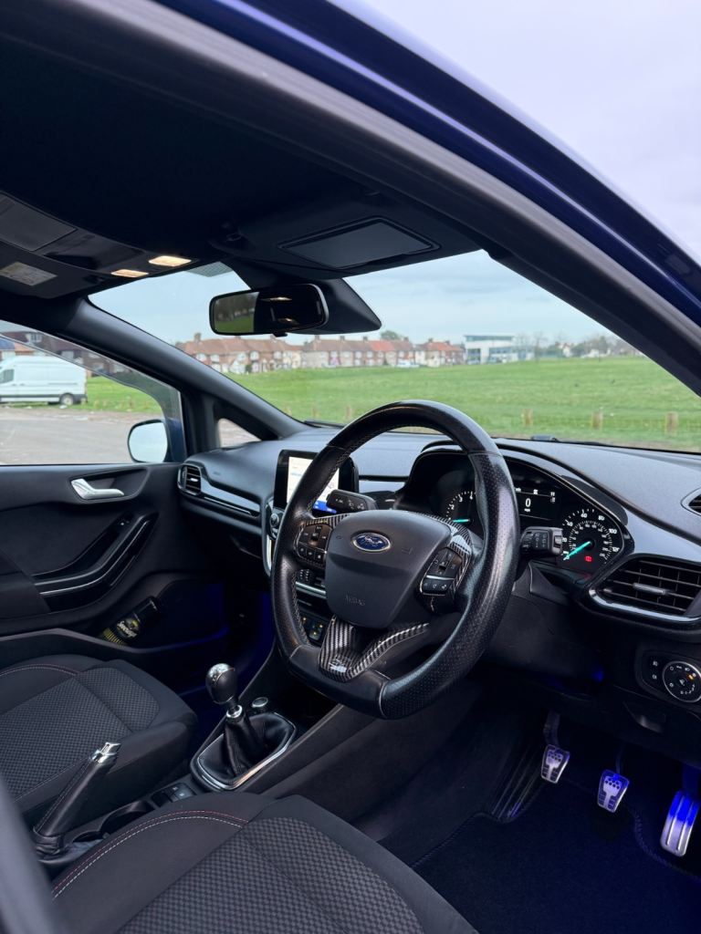 Good spec including ST-Line body kit, 18” gloss black multi-spoke alloys with red calipers, flat-bottomed sports steering wheel, sports interior trim, touchscreen infotainment, Bluetooth, DAB, air conditioning and multifunction controls.