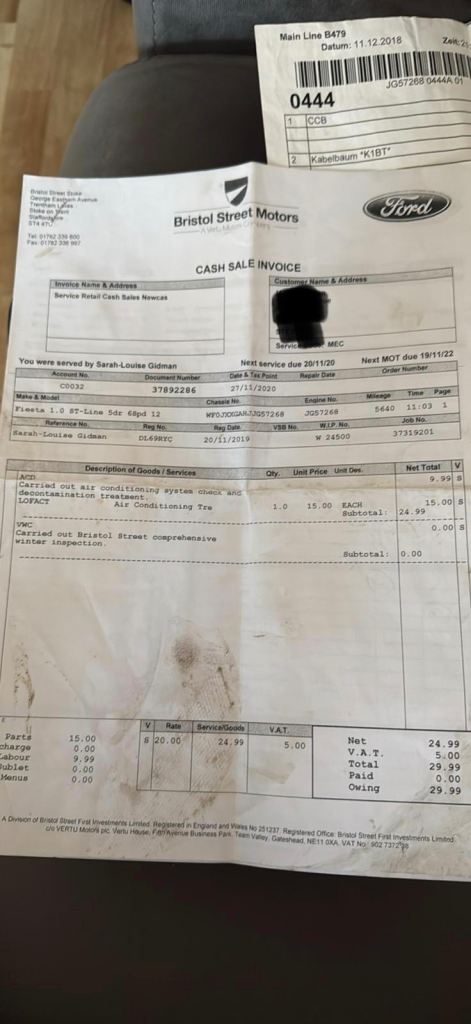 Car was bought from Bristol motors with all of the paperwork