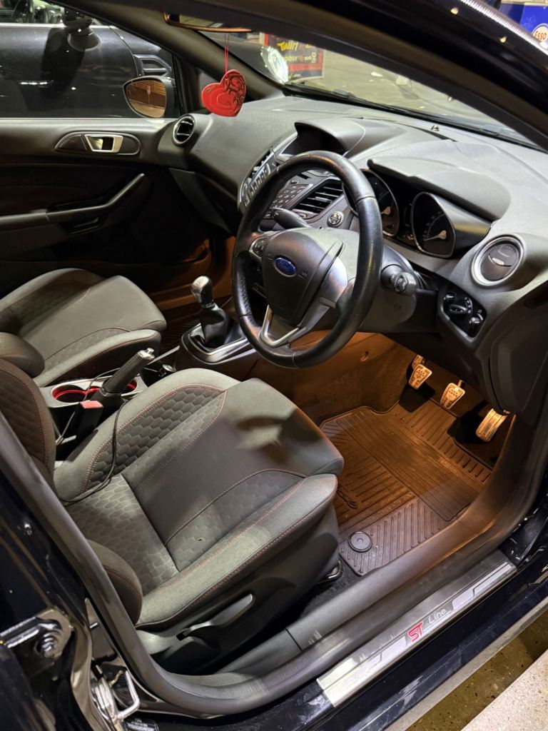 2017 Ford Fiesta ST-Line Black Edition a stylish, sporty hatchback economic and practicality. The car also offers keyless entry This stunning 5-door model has covered just 57,000 miles and has been recently serviced, so it's ready for its next owner to simply drive away and enjoy. Finished in sleek black with contrasting red accents, the Fiesta ST-Line stands out on the road with its bold styling, sporty body kit, and eye-catching alloy wheels. Under the bonnet, you'll find a responsive and efficient engine paired with a 5-speed manual gearbox, delivering an engaging drive and excellent fuel economy ideal for both city driving and longer journeys. Inside, you'll find a well-kept, modern cabin with sports seats, and ST-Line trim detailing throughout, offering comfort and a premium feel. With five doors, it's practical for families or those who need a bit more space, and the boot offers plenty of room for everyday use. Car has been maintained very well and taken care of