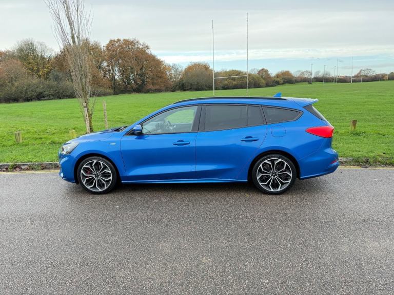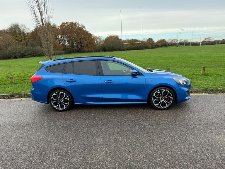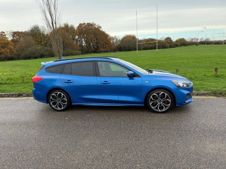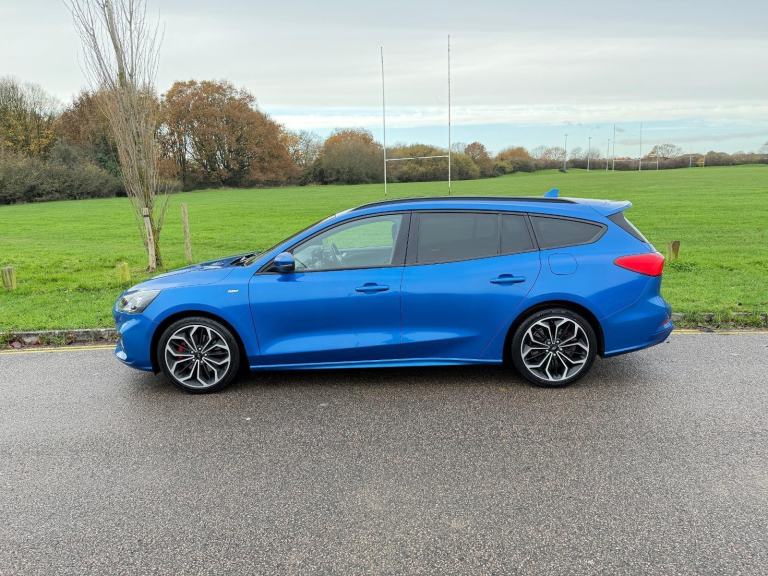 ULEZ COMPLIANT - 19 Reg - Desert Island Blue with Charcoal Half Leather Trim, This utterly stunning looking Focus Estate comes with a very high specification which induces: Apple / Android Carplay, Factory Colour Satellite Navigation, DAB Radio, Bluetooth, Heated Seats, Dual Climate Control, Cruise Control, Trip Computer, Power Folding Mirrors, Auto Lights, Auto Dipping Mirror, Leather Steering Wheel, Airbags, ISO-Fix Seating, 18" Alloy Wheels, Rear Window Tints, Front Fogs, comes with its latter service history (5 services) and a new brand new MOT, really a stunning looking car in this gorgeous colour, it looks amazing... drives superbly so any inspection welcome, HPI Clear, Part Exchange up or down welcome. **Debit/Credit Cards Accepted** **Open 6 Days a week** **POOR CREDIT NO PROBLEMS - Finance available (subject to status)** (*Sometimes we may still reserve the right to not offer unaccompanied test drives)