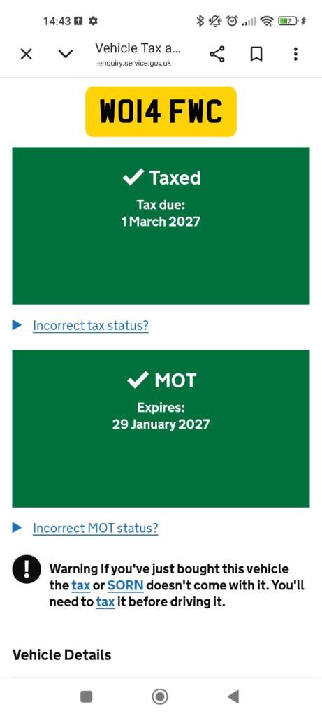 This vehicle has not been reported stolen, scrapped, exported or flagged as unroadworthy.
