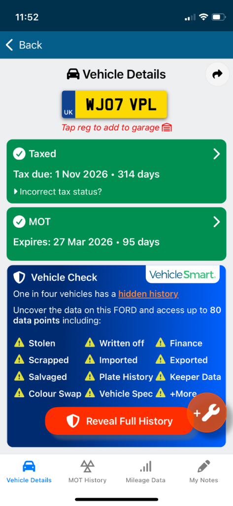Buy the full report for guaranteed data accuracy, outstanding finance, valuation, milage check & VIN match for £9.99 (normally £19.99)