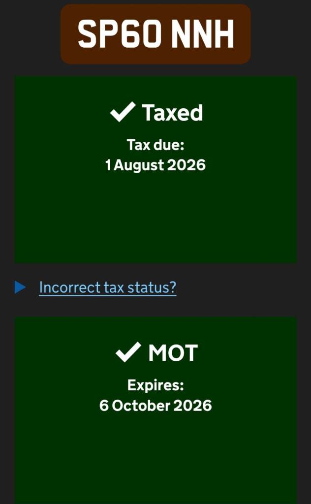 This vehicle has not been reported stolen, scrapped, exported or flagged as unroadworthy.